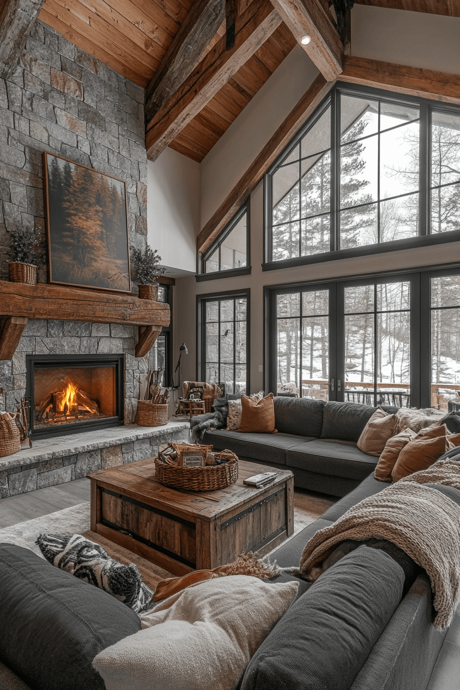 Rustic textures warm a dark grey sofa living room with grounded comfort. Exposed wood and leather details soften the bold grey base. Chunky knits add cozy dimension. Ambient lighting enhances warmth throughout the space. The atmosphere feels welcoming and authentic. Bring rustic character into your decor and enjoy inviting style now.