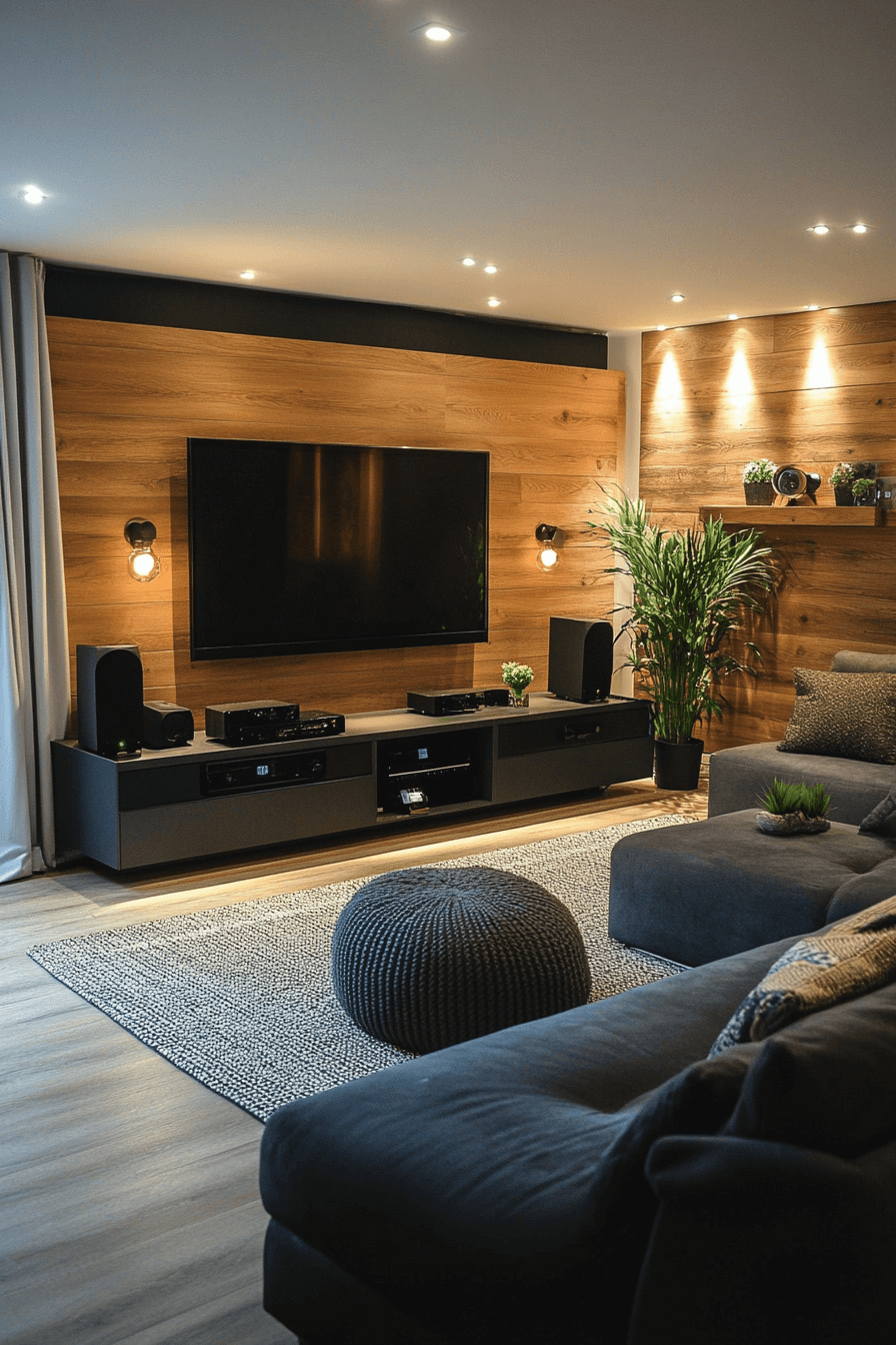 Technology-forward design modernizes a dark grey sofa living room seamlessly. Smart lighting and streamlined entertainment systems enhance function. The deep upholstery anchors sleek innovation. Monochrome styling keeps the aesthetic cohesive. The space feels efficient and modern. Upgrade your living room and embrace high-tech comfort today.