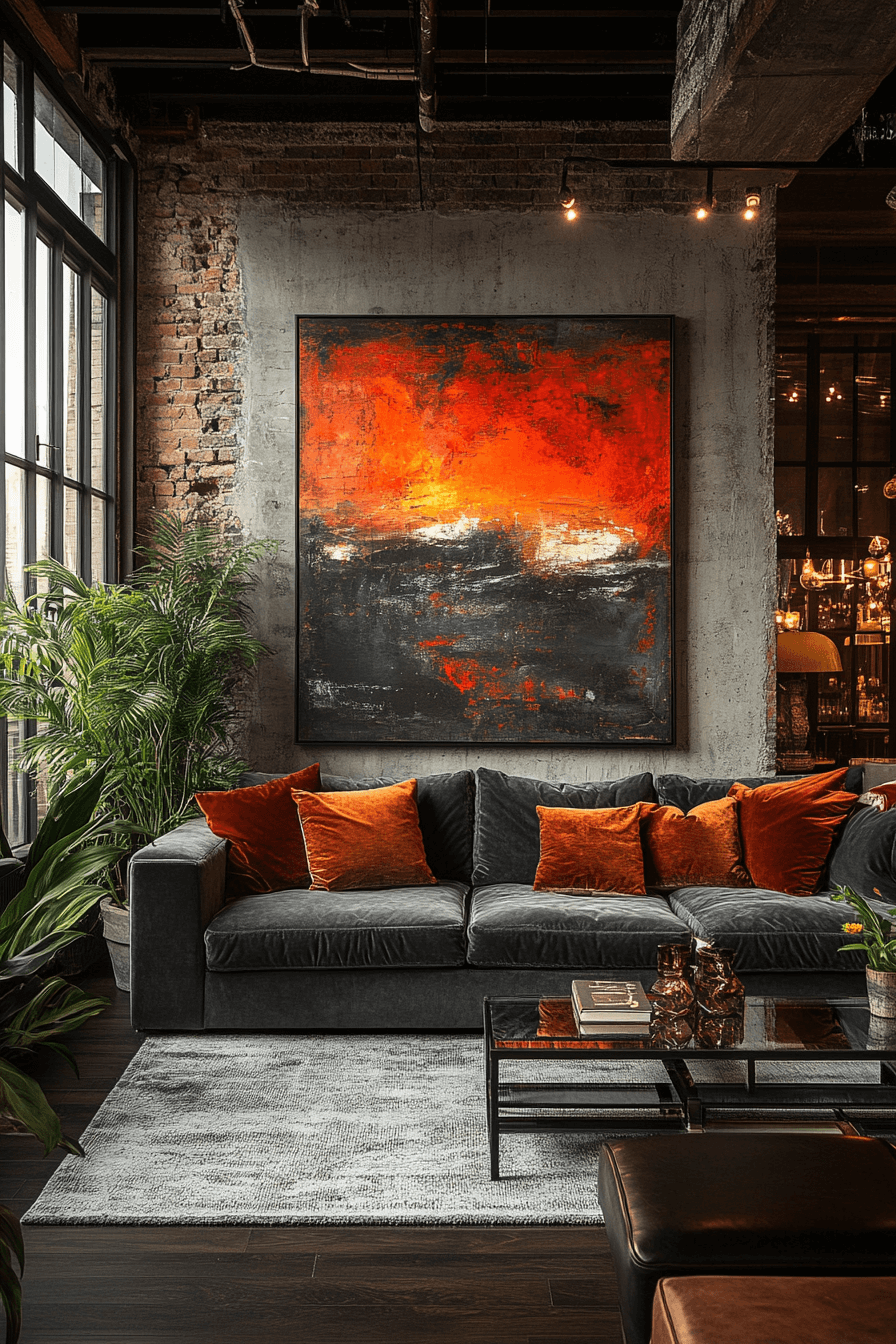 Loft-inspired openness gives a dark grey sofa living room dramatic presence. High ceilings and expansive layouts highlight the sofa as the focal anchor. Jewel-toned accents create rich contrast. Reflective surfaces amplify light and dimension. The atmosphere feels luxurious yet contemporary. Embrace loft-style sophistication and transform your space today.