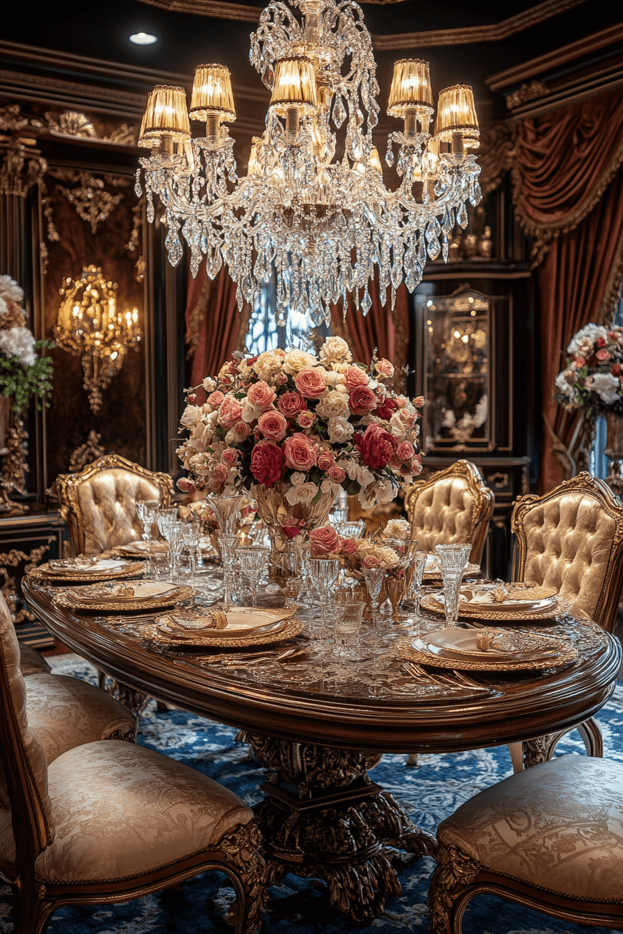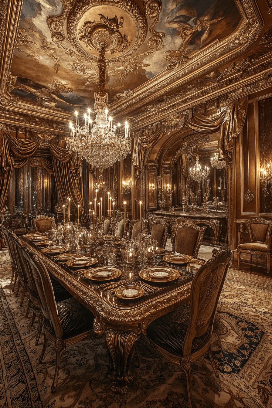 Baroque extravagance elevates antique dining rooms into ornate masterpieces. Elaborately sculpted tables and sweeping curves command attention. Gilded frames and luxurious fabrics intensify opulence. Statement chandeliers add theatrical brilliance overhead. Every element celebrates grandeur. Indulge in Baroque-inspired antique dining rooms and transform your dining area into a lavish showcase now!