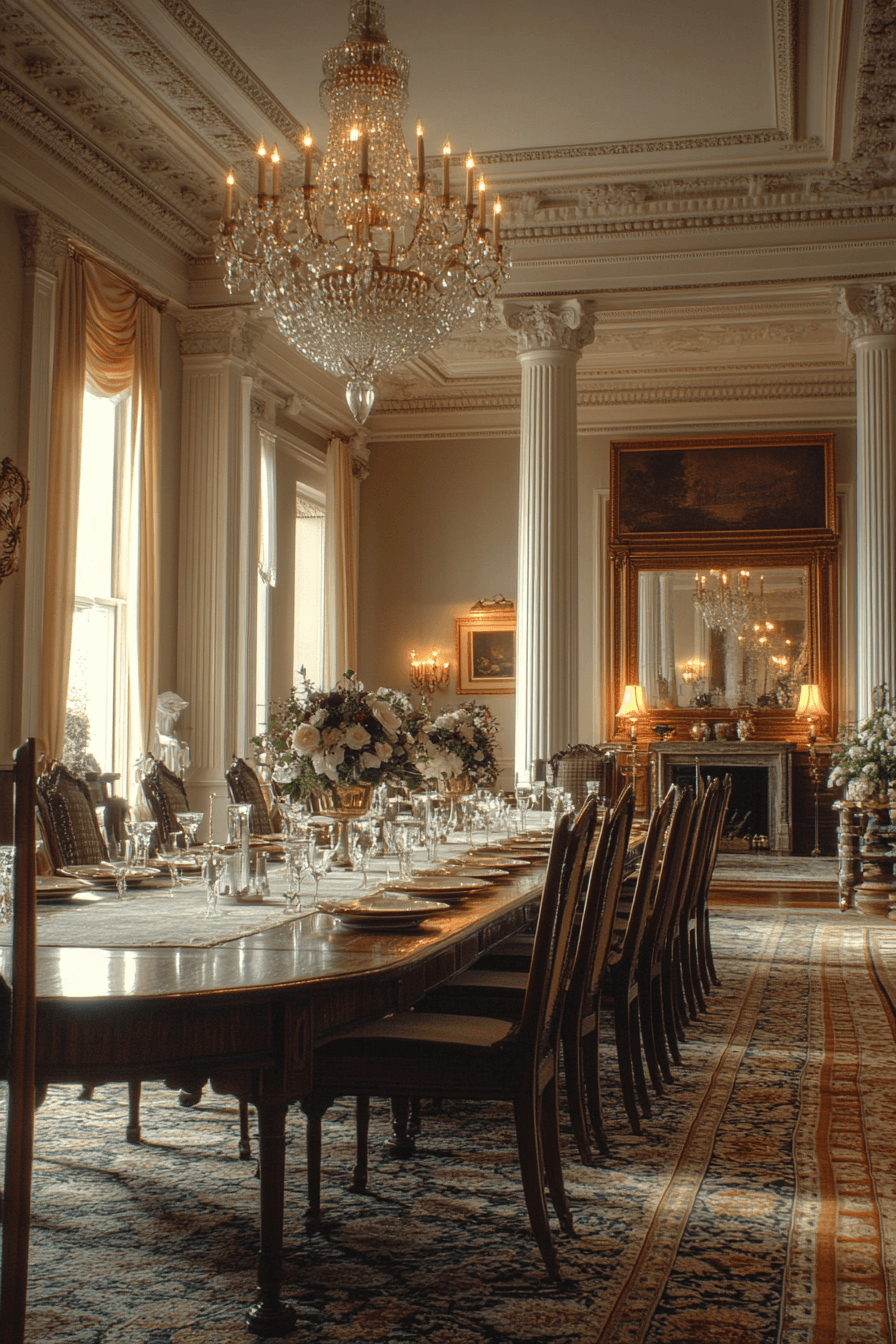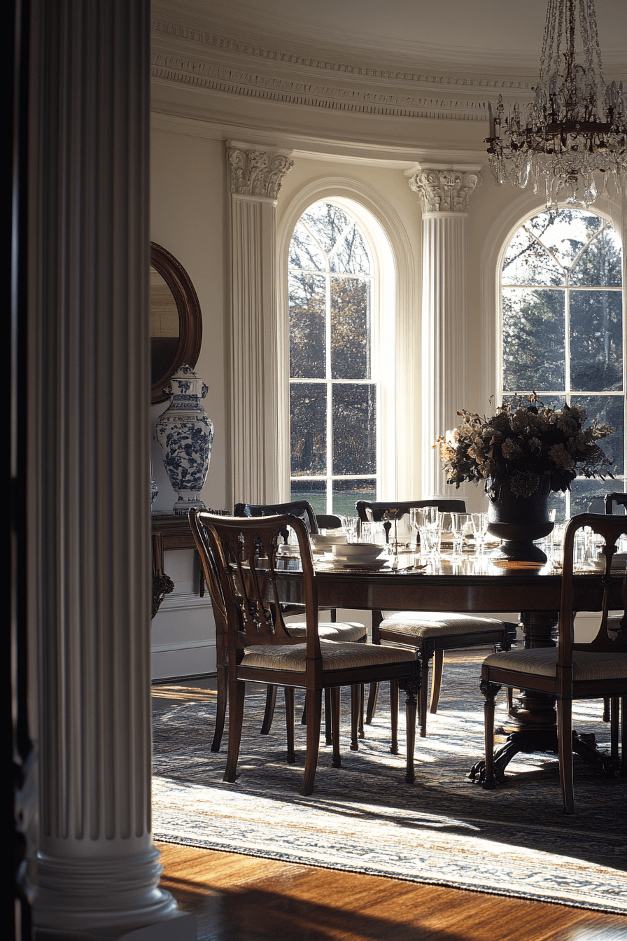 Regency elegance reinterprets antique dining rooms with polished symmetry and graceful proportion. Sleek wood finishes and softly curved chair backs keep the room feeling composed. Pale, neutral palettes enhance brightness while maintaining refinement. Subtle metallic accents reflect light with delicate sophistication. The atmosphere feels intimate yet elevated. Refresh your space with Regency antique dining rooms and enjoy classic grace at your table now!