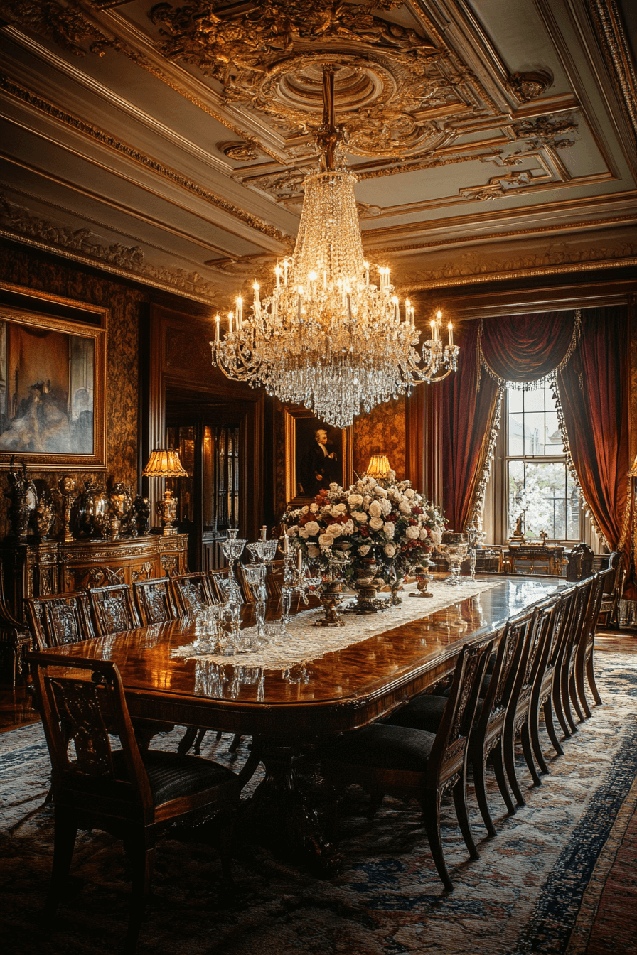 Gilded Age luxury transforms antique dining rooms into dazzling stages for celebration. Ornate sideboards and shimmering chandeliers capture immediate attention. Velvet upholstery and metallic finishes heighten dramatic flair. Rich jewel tones add warmth and intensity. The room feels confident and unforgettable. Host in brilliance with Gilded Age antique dining rooms and embrace grand entertaining now!