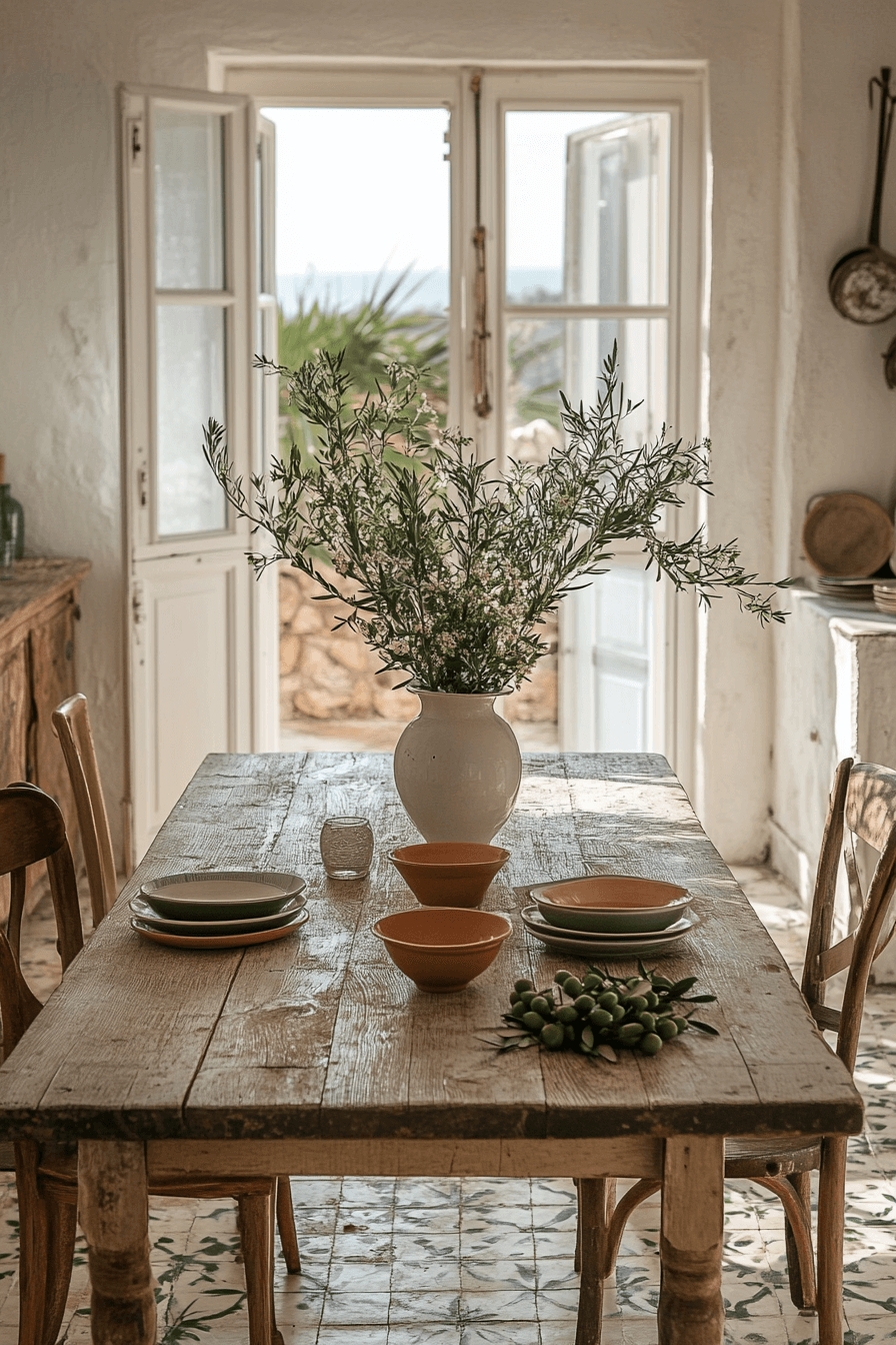 Mediterranean coastal influence refreshes antique dining rooms with sunlit ease. Lightwashed wood finishes and woven textures brighten the room. Ceramic accents add playful detail. Breezy fabrics soften the atmosphere. The mood feels relaxed and joyful. Welcome Mediterranean-inspired antique dining rooms into your home and let every meal feel like a seaside escape today!