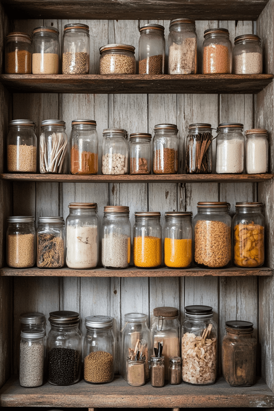 Rediscover the charm of the past with antique farmhouse decor ideas that make your pantry feel warm and storied. Worn shelving, glass jars, and tin canisters bring character to even the smallest corners. The soft imperfections remind you of simple living and heartfelt meals. Every item adds a whisper of history to your home.