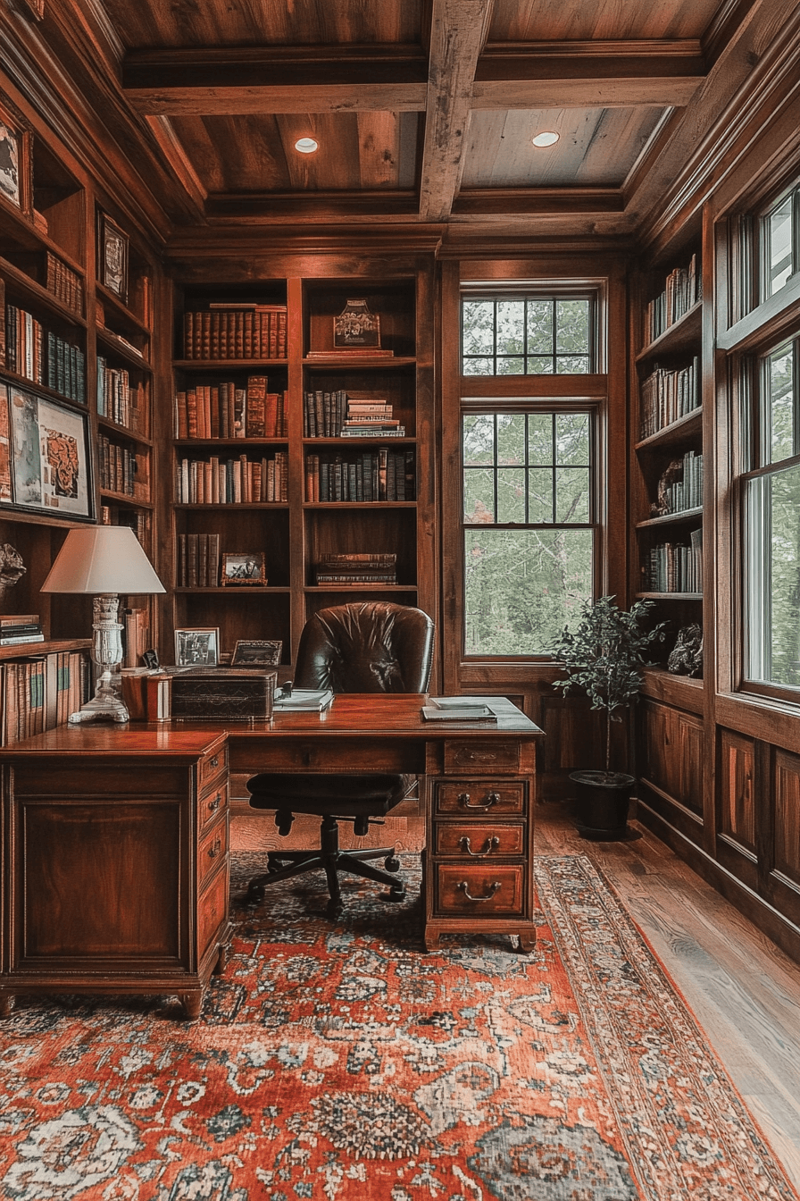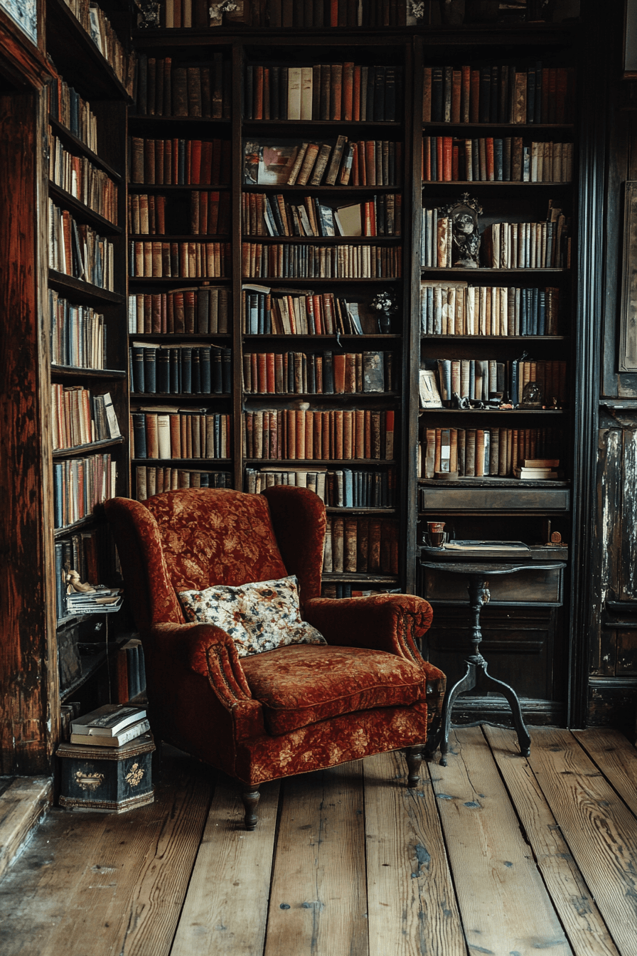 Curl up with a good book in a library designed around antique farmhouse decor ideas. Wooden shelves, soft lamps, and worn leather bindings create an atmosphere of peace. The air feels thick with wisdom and warmth. It’s comfort you can feel in every page.
