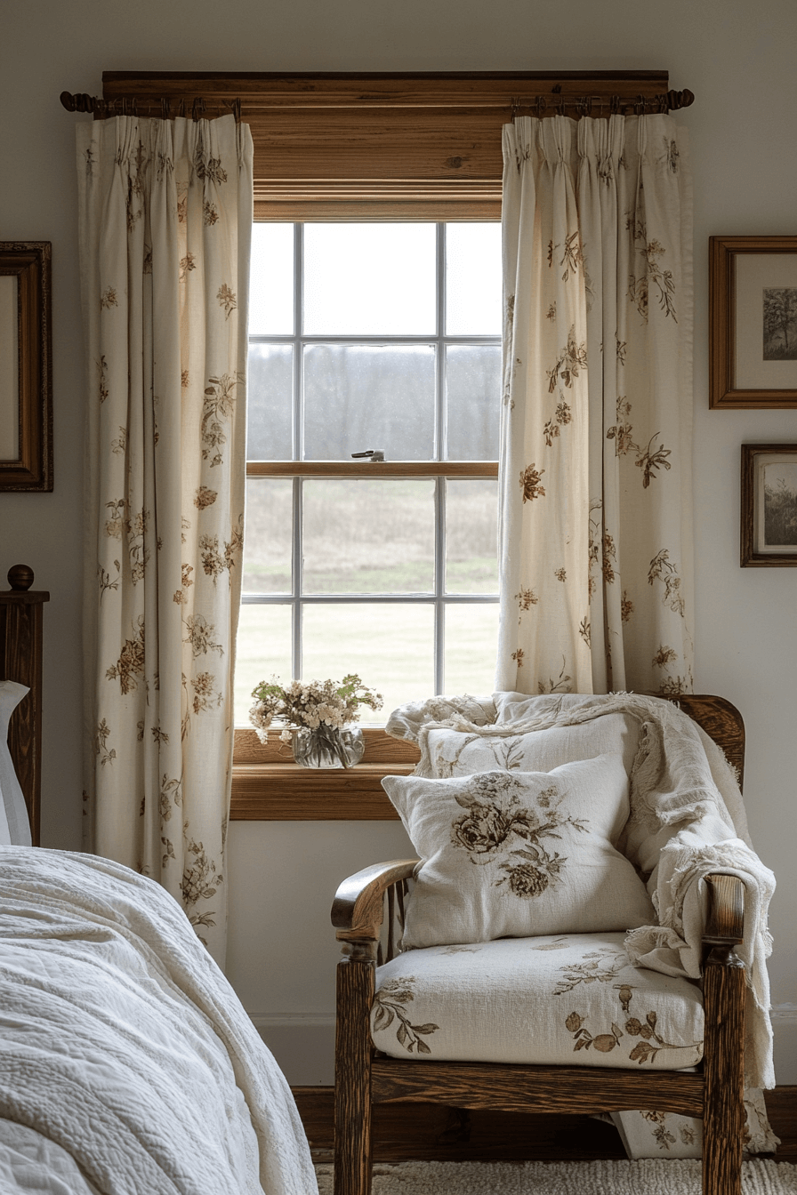 Frame the world with grace using antique farmhouse decor ideas for your windows. Linen curtains and wooden shutters bring simplicity and warmth. The filtered light glows softly against rustic walls. Each view feels calm and nostalgic.