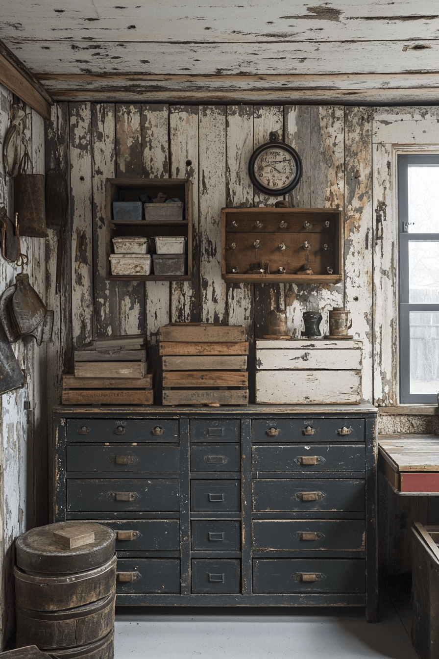 Celebrate creativity and skill with antique farmhouse decor ideas that honor the artistry of workshops. Wooden tools, aged worktables, and lantern lighting create nostalgic focus. Each scratch and stain adds character and soul. It’s where inspiration meets history.