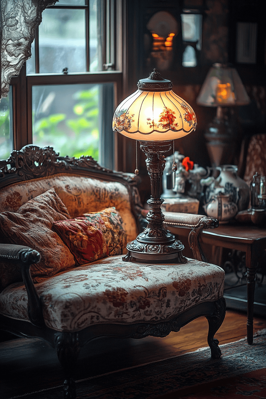 Capture the soft glow of nostalgia with antique farmhouse decor ideas focused on vintage lighting. Whether it’s a brass lamp or an aged lantern, the warmth feels timeless and calming. The intricate detailing adds a touch of quiet sophistication. Each light becomes a gentle nod to craftsmanship.