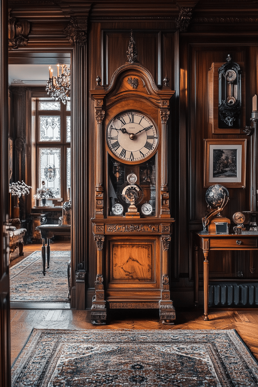 Add timeless rhythm to your home with antique farmhouse decor ideas inspired by grandfather clocks. The gentle ticking fills your space with calm and continuity. Polished wood and brass details make every hour feel meaningful. It’s tradition wrapped in elegance.