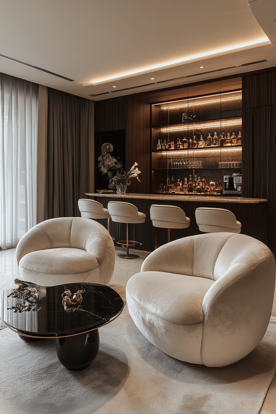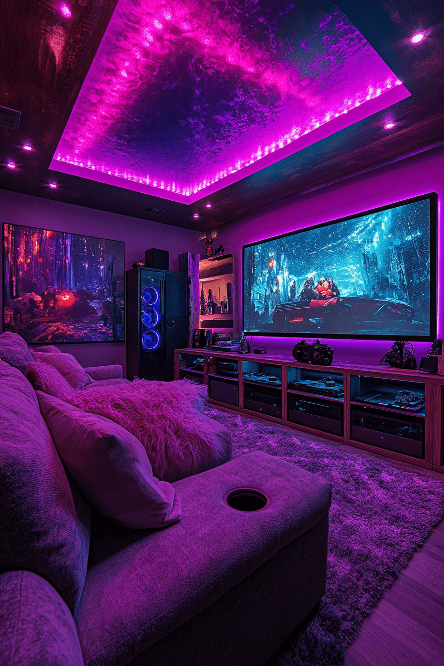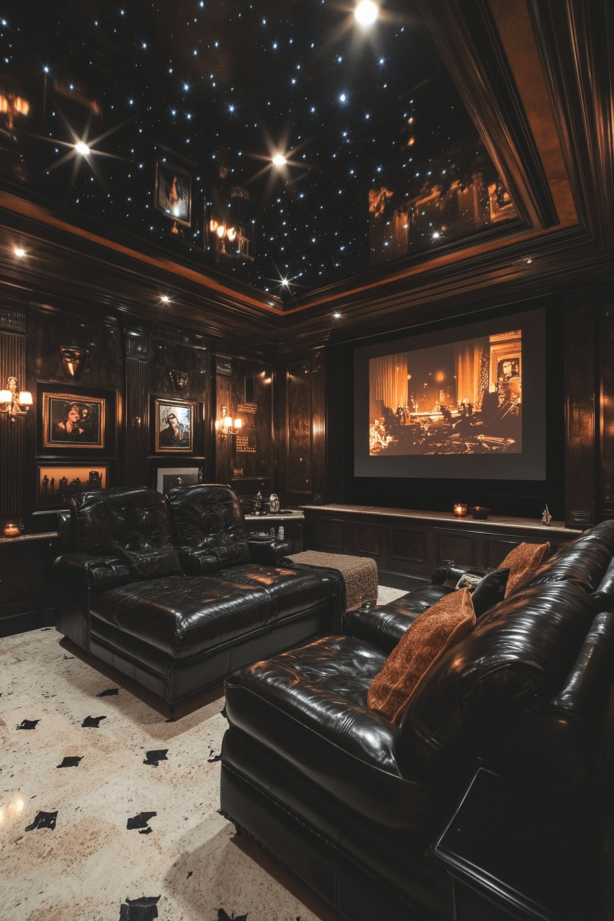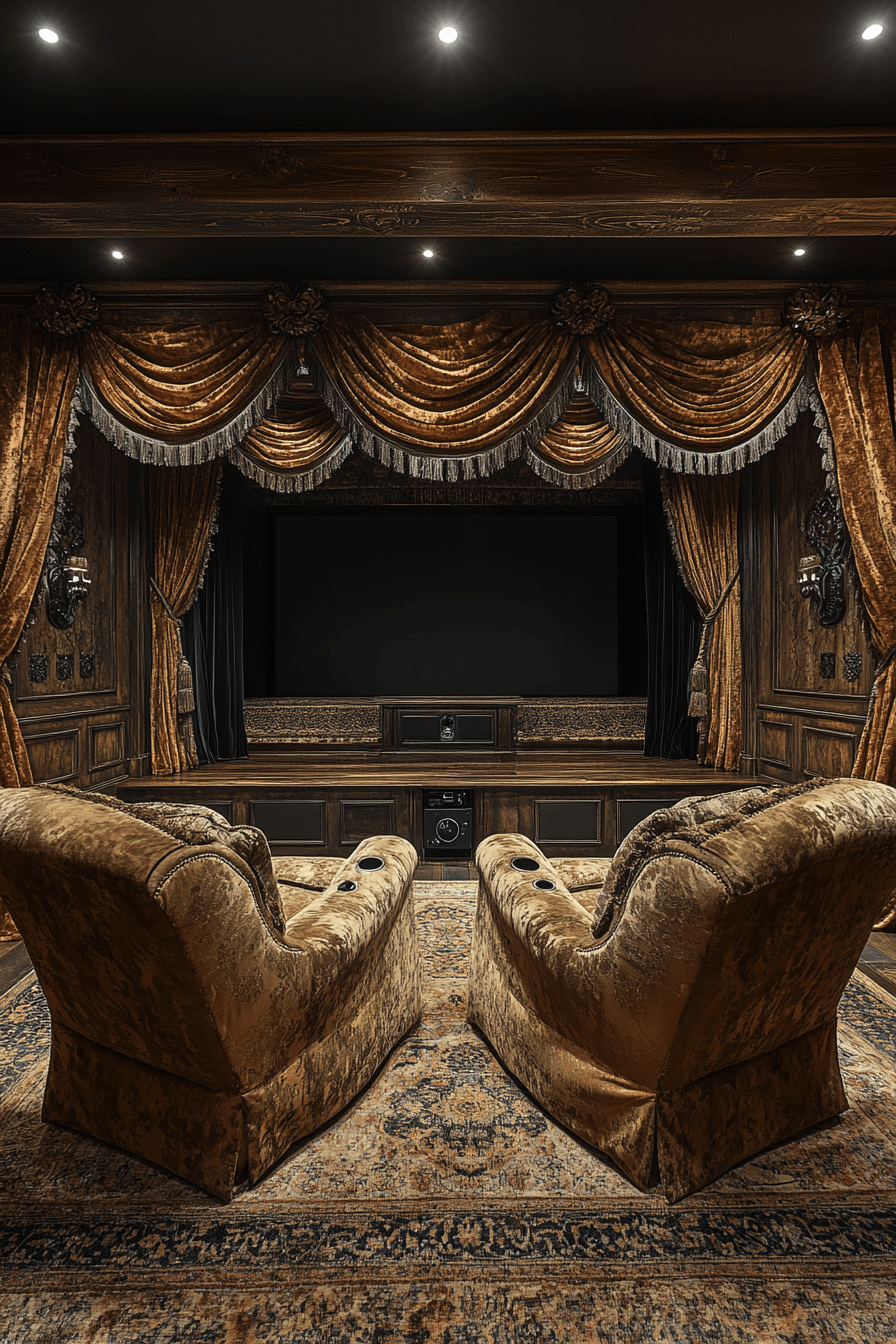 Channel old Hollywood glam with basement family room ideas inspired by vintage theaters. Velvet seating, dramatic lighting, and metallic accents set a luxe mood. Rich textures elevate every movie night. The immersive ambiance delights every guest. These basement family room ideas make your basement feel premiere-ready. Design your cinematic escape and let the spotlight shine.