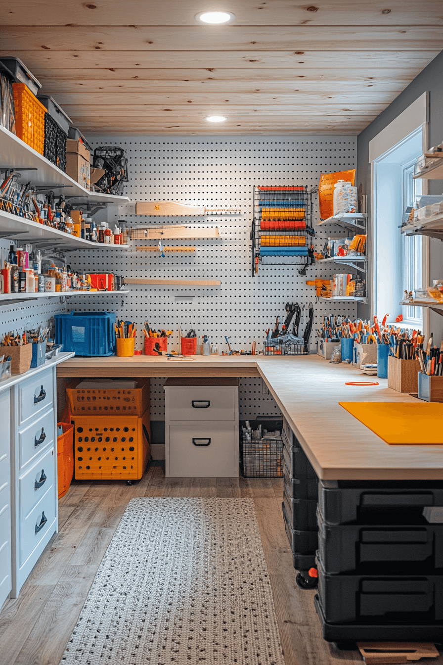Turn hobbies into bonding opportunities with basement family room ideas that double as creative studios. Spacious tables and durable finishes make DIY projects easy. Clearly organized storage keeps everything accessible. The environment feels productive yet relaxed. These basement family room ideas transform crafting into a shared experience. Build a project-ready basement and spark creativity for everyone.