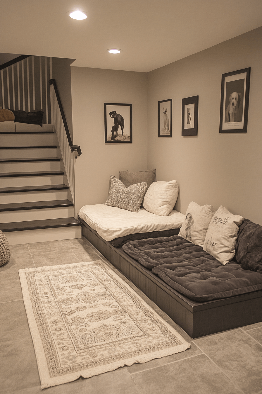Make your lower level pet-ready with basement family room ideas that embrace furry companions. Durable flooring and washable textiles ensure practicality. Dedicated pet zones keep everyone comfortable. The space feels stylish without sacrificing function. These basement family room ideas include every member of the household. Design a pet-friendly basement and relax together effortlessly.