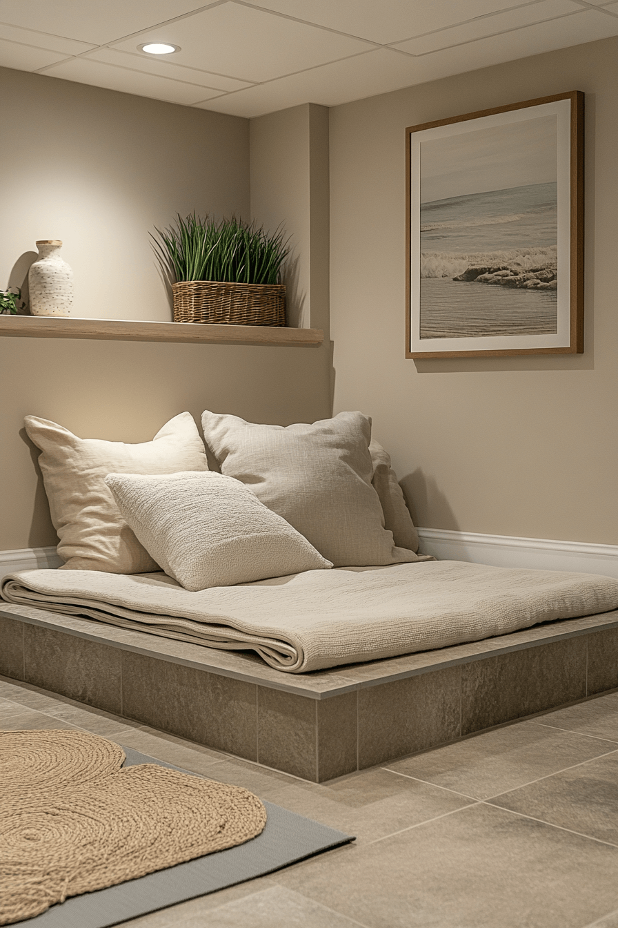 Carve out a peaceful sanctuary with basement family room ideas centered on reading and relaxation. Built-in shelves and oversized chairs create an inviting atmosphere. Warm lighting softens the space and encourages unplugging. Plush textures add comfort for every age group. These basement family room ideas bring balance to busy households. Design your quiet escape and enjoy moments of calm together.