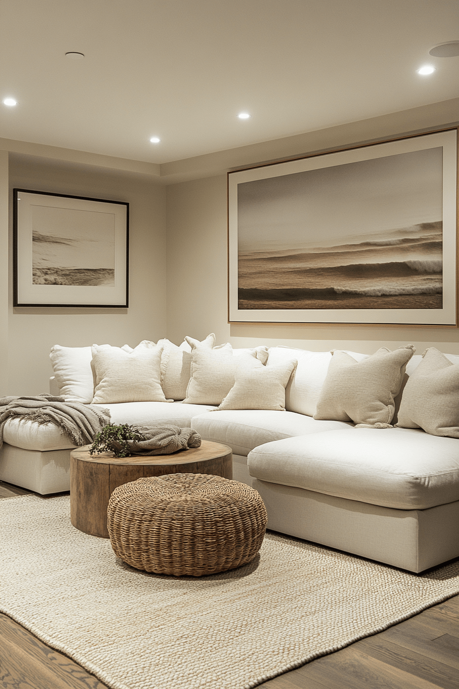Embrace modern simplicity with basement family room ideas grounded in minimalist style. Streamlined furnishings and soft tones create visual clarity. Modular pieces allow flexibility without clutter. The room feels calm, open, and intentional. These basement family room ideas prove less truly can be more. Elevate your lower level with sleek, simplified design.