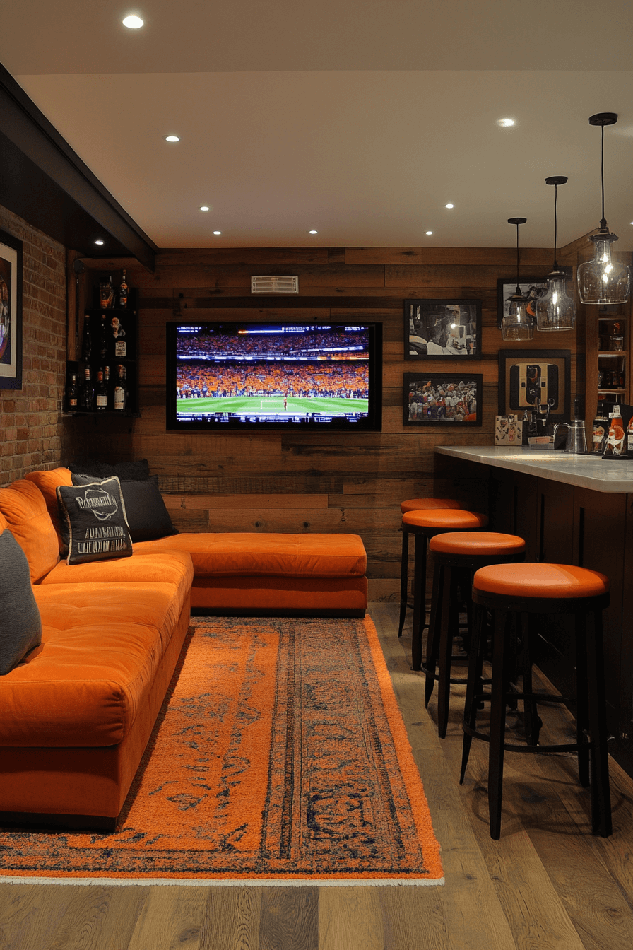 Bring stadium-level excitement home with basement family room ideas created for sports fans. Oversized screens, bold décor, and team-inspired accents create an electric atmosphere. Plush seating keeps everyone comfortable through every big moment. A snack bar or beverage station adds convenience. These basement family room ideas make your home the go-to game-day destination. Design your own sports retreat and cheer in comfort.