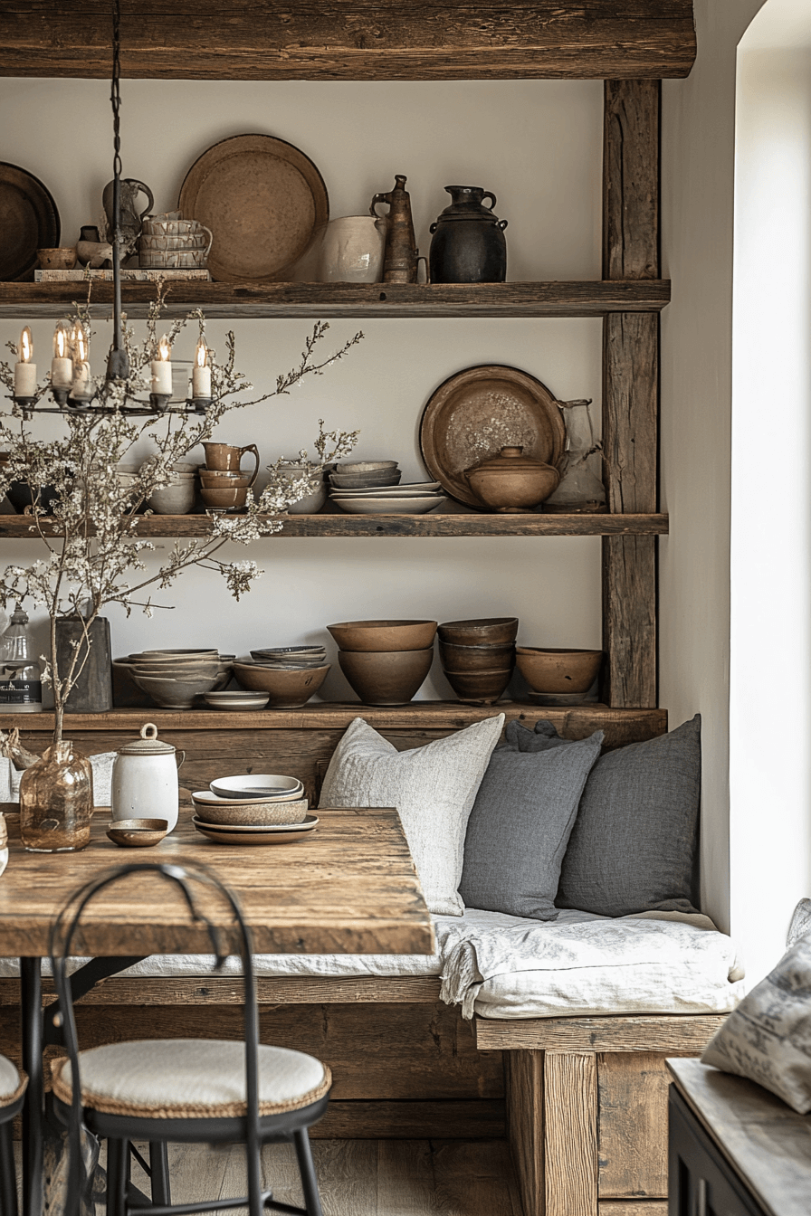 Boho layers can make expressive breakfast nook ideas feel cozy, creative, and full of warmth. Woven textures, colorful textiles, and handcrafted accents help the space feel relaxed and beautifully lived in. Natural light softens the look and makes all the layers feel even more inviting. The mix of materials and shapes creates personality without losing comfort. The final nook feels joyful, artistic, and perfectly relaxed. Discover more breakfast nook ideas with boho character and charm!