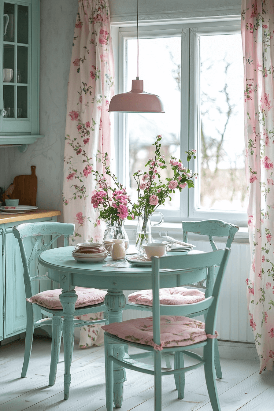 Soft pastel shades can make charming breakfast nook ideas feel sweet, gentle, and full of morning light. Cushioned seating around a small round table creates an inviting setup for breakfast, coffee, or tea. Hints of blush, mint, lavender, or pale peach bring color without overwhelming the room. Light floral touches or delicate decor help complete the soft atmosphere. The final nook feels dreamy, uplifting, and beautifully cozy. Click to explore more breakfast nook ideas with pastel softness and charm!