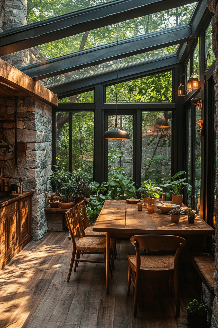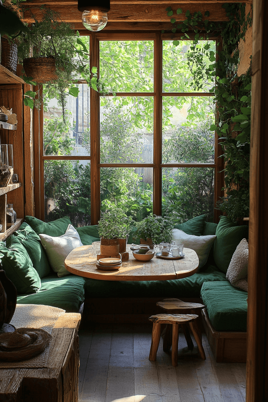 Garden views can make refreshing breakfast nook ideas feel even more peaceful and energizing. A large window that looks out onto greenery brings in natural beauty and bright daylight all at once. Simple wooden furniture helps keep the space grounded and organic. A few indoor plants can echo the outdoor view without crowding the layout. The final effect feels fresh, calm, and full of natural charm. Tap to discover more breakfast nook ideas that celebrate green views and morning light!