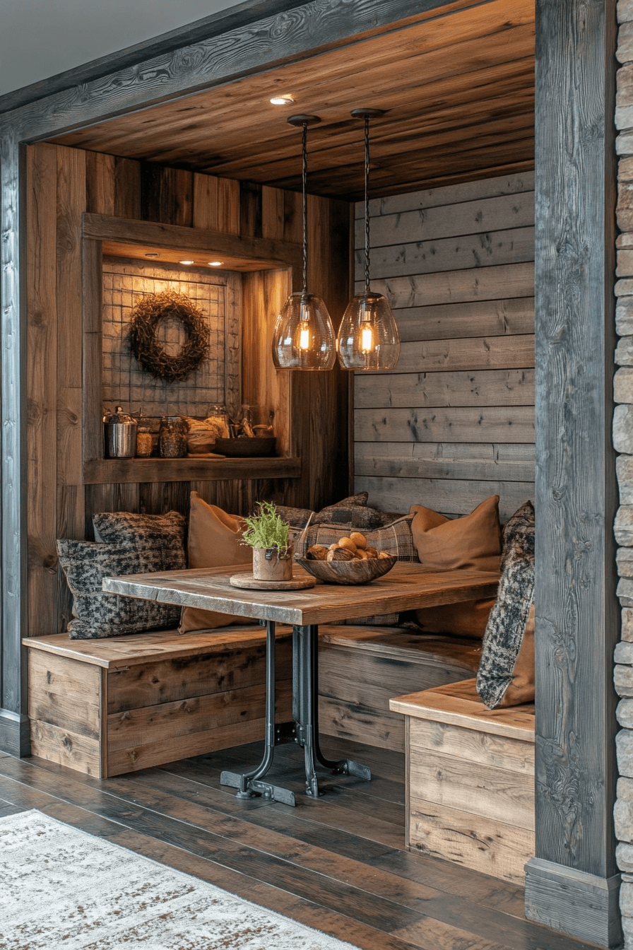 Warm wood can make timeless breakfast nook ideas feel welcoming, classic, and incredibly easy to enjoy every day. A wooden table paired with coordinated seating brings harmony and a natural sense of comfort to the space. Soft lighting and plush cushions help the nook feel even more inviting. The rich tones of the wood create a familiar warmth that never feels out of style. The finished look is cozy, practical, and beautifully balanced. Click to explore more breakfast nook ideas filled with warm wood charm!