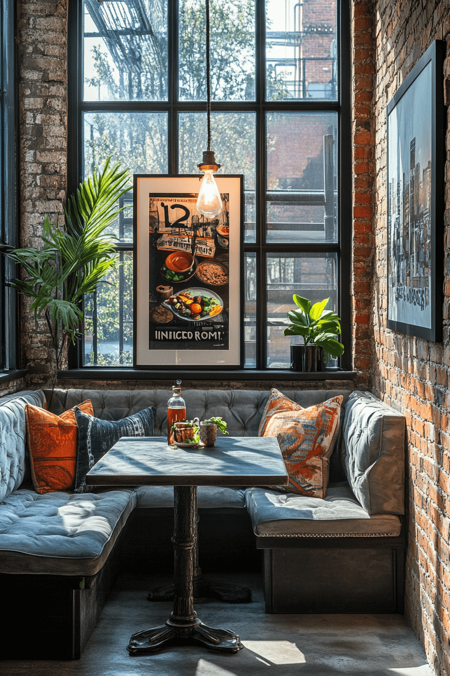 Urban styling can make compact breakfast nook ideas feel smart, sleek, and full of personality. A slim table with stools or a narrow bench helps save space while keeping the area useful for quick breakfasts or coffee breaks. Graphic accents and bold art add style without overwhelming the room. Clean lines and modern materials help the nook feel polished and current. The finished design feels efficient, stylish, and perfect for city living. Tap to uncover more breakfast nook ideas made for modern spaces!