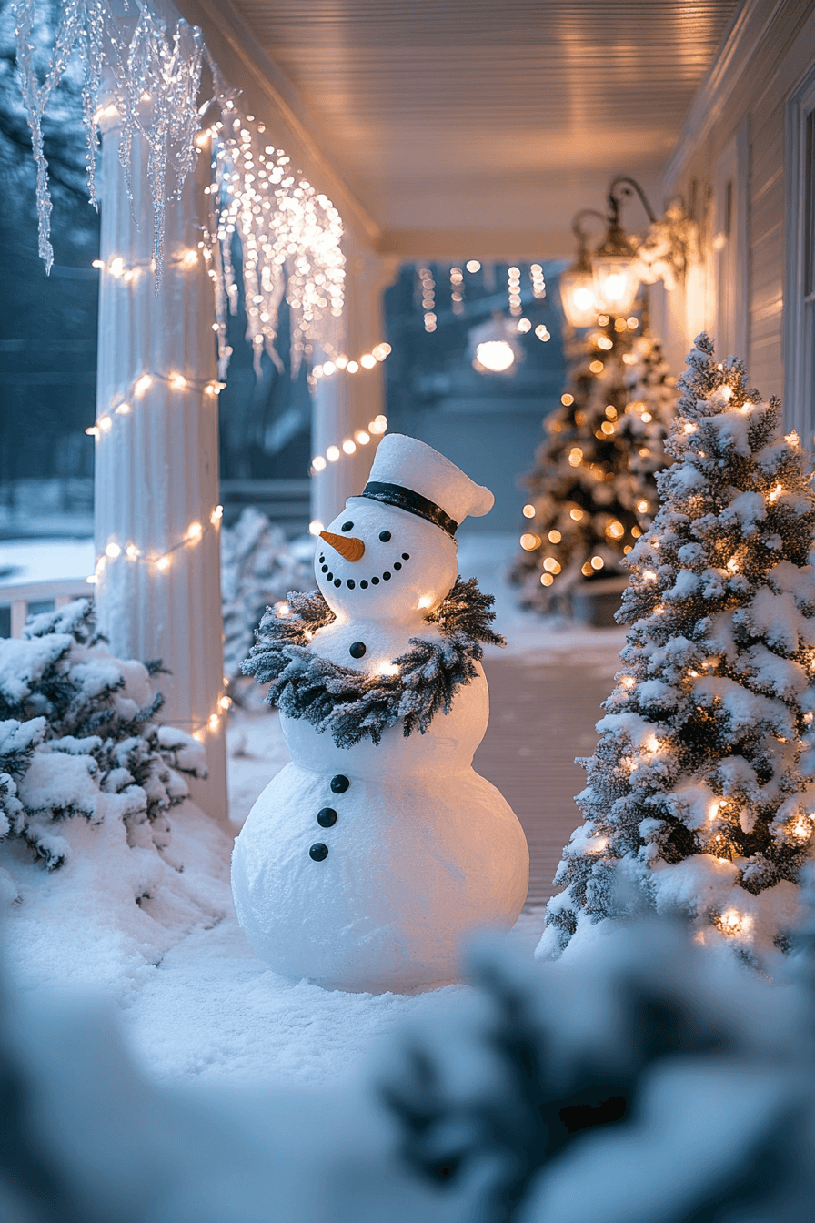Playful shapes and cheerful accents bring youthful delight into whimsical Christmas porch decor. Colorful characters, quirky signs, and animated details create a fun holiday scene. Each piece offers personality and charm in a lighthearted way. The result is joyful, friendly, and perfect for family settings.