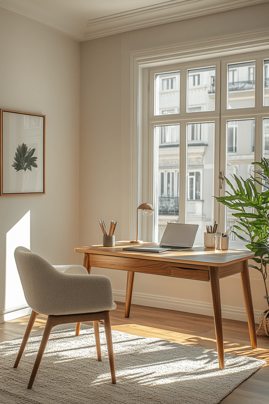 A soft neutral palette and clean-lined furniture can make an elegant home office feel calm, elevated, and wonderfully easy to work in. A tailored desk, comfortable chair, and simple storage keep the room efficient without making it feel crowded. Limiting decorative extras helps the space stay open and distraction-free throughout the day. Warm lighting and a few refined accents bring in personality while preserving the peaceful mood. The final atmosphere feels polished, focused, and beautifully serene. Explore more ideas to design an elegant home office that feels calm, stylish, and productive!