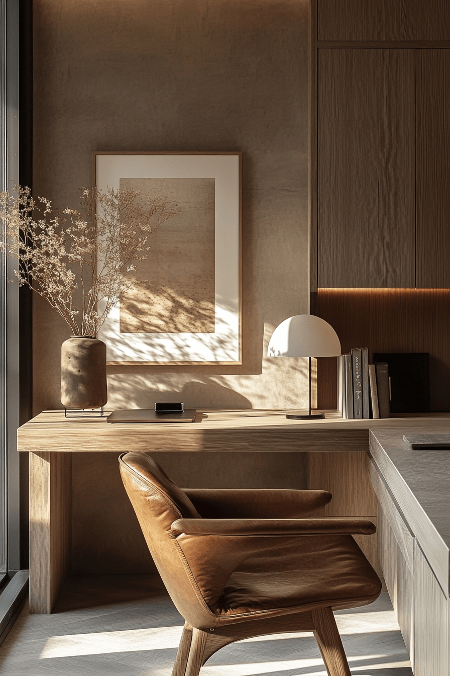 Warm neutrals can make an elegant home office feel inviting, polished, and deeply comfortable for everyday use. Beige, ivory, taupe, and soft caramel tones create a calm setting that supports focus without feeling plain. Plush textures and warm lighting add a layer of richness that makes the room feel more personal. This palette works beautifully for a workspace that needs to feel both professional and restful. The final atmosphere feels welcoming, refined, and wonderfully balanced. Tap to discover more inspiration for a warm neutral elegant home office!