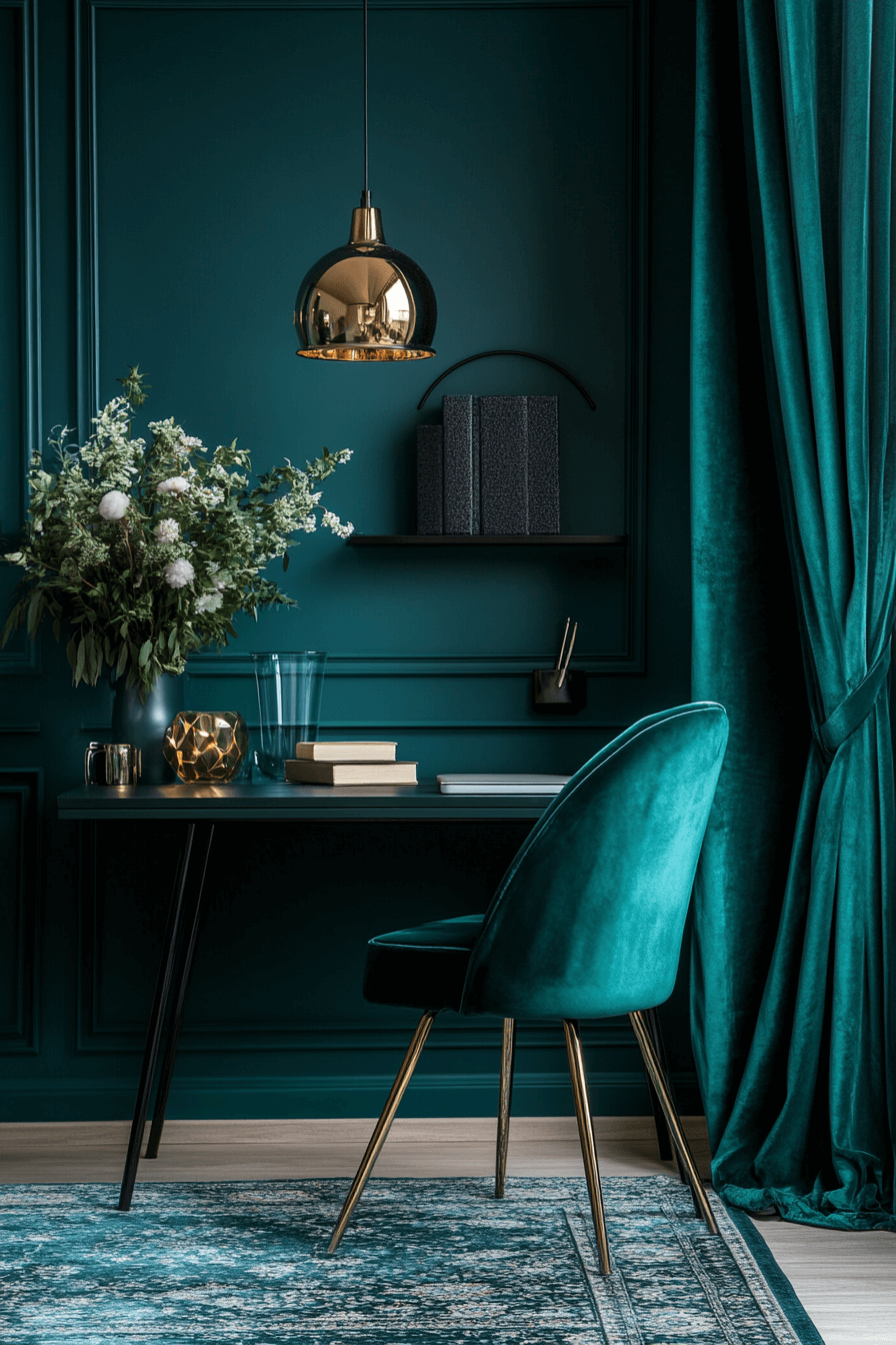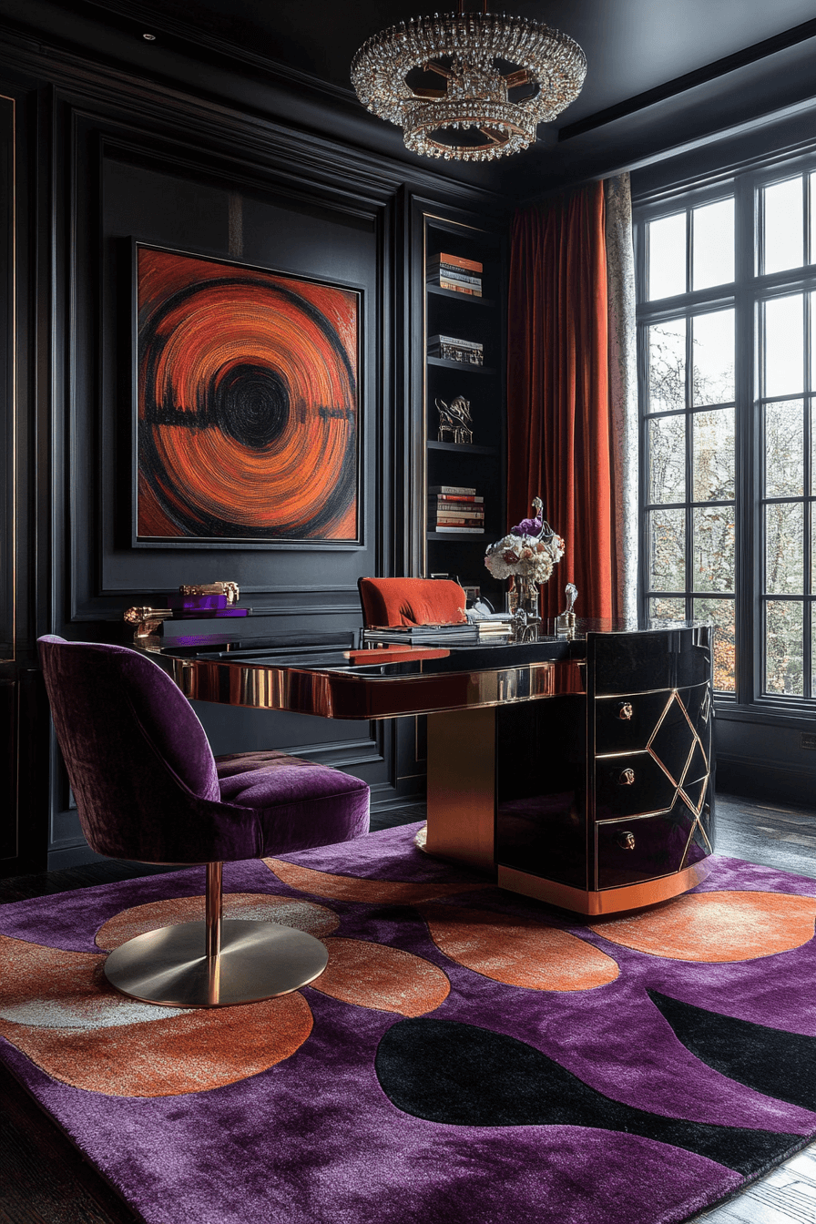 Art Deco details can make an elegant home office feel glamorous, dramatic, and full of personality. Bold geometry, rich jewel tones, metallic finishes, and plush textures create a workspace with real visual presence. Statement lighting and mirrored accents add sparkle while still supporting a practical layout. Sleek furniture silhouettes keep the room feeling modern rather than overly ornate. The final office feels creative, luxurious, and wonderfully confident. Discover more ways to bring Art Deco glamour into your elegant home office!