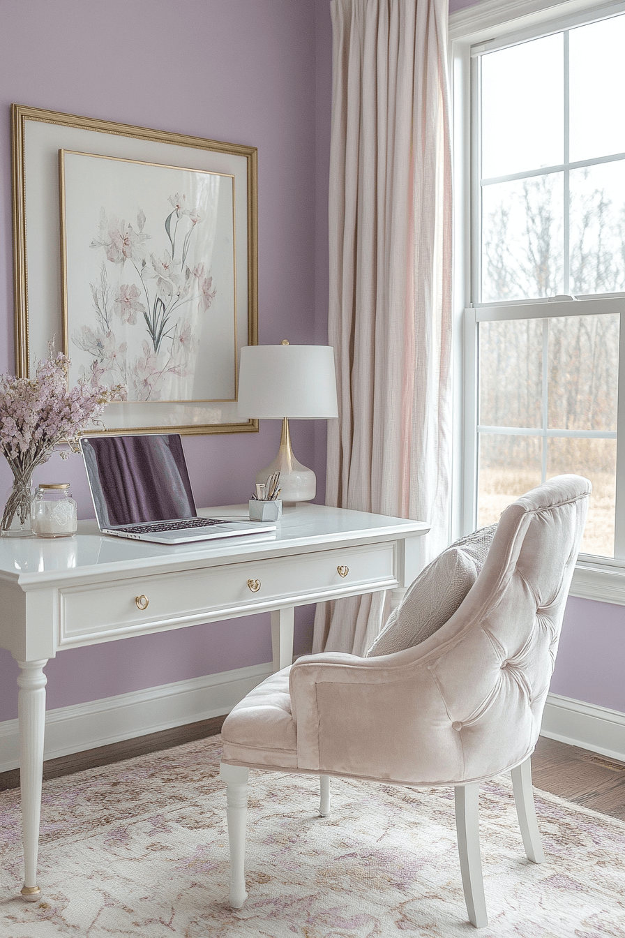 Gentle pastel tones can soften an elegant home office and create a refreshing atmosphere that still feels polished and productive. Blush, pale blue, or muted sage can help the room feel airy, uplifting, and comfortable for long workdays. These lighter shades also make smaller spaces feel more open and welcoming. Coordinated fabrics and subtle wall art add personality without visual noise. The result feels graceful, calm, and beautifully creative. Find more inspiration for a pastel-toned elegant home office with soft stylish charm!
