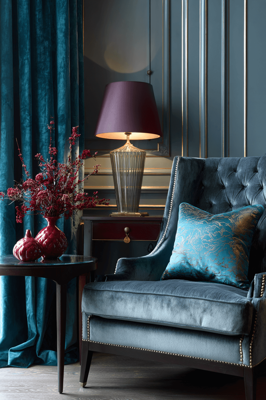 Jewel tones can give a grey couch living room a more dramatic and luxurious personality. Emerald, sapphire, and deep burgundy accents stand out beautifully against the cool neutrality of the sofa. Velvet textures and metallic details help the palette feel even richer and more elevated. The contrast creates a look that is bold while still feeling balanced and sophisticated. The final space feels glamorous, stylish, and full of depth. Click to uncover more jewel-tone styling ideas for your grey couch living room!