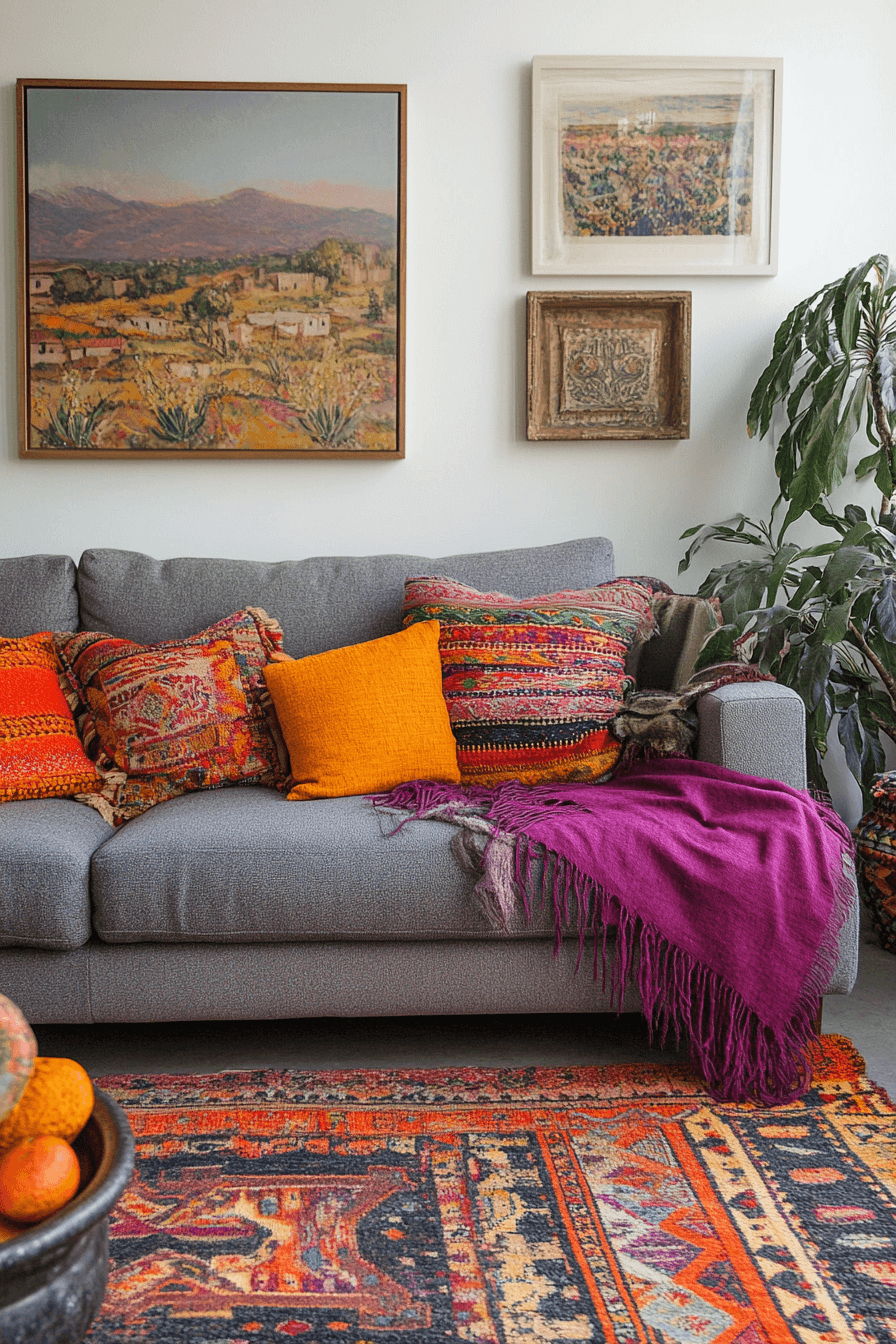 Colorful grey sofa living room ideas energize and personalize your home. Bright pillows, patterned rugs, and bold artwork create vibrancy without overwhelming the space. The neutral grey sofa balances lively colors effortlessly. The room feels dynamic, expressive, and full of personality. Perfect for those who love creativity and fun in décor. Explore colorful grey sofa living room ideas and ignite your imagination!