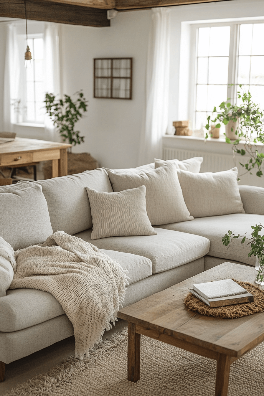 Warm neutral grey sofa living room ideas create a cozy, welcoming ambiance. Beige, cream, and taupe accents soften the space and complement the grey sofa. Textured rugs, cushions, and wood elements add depth and comfort. The room feels balanced, inviting, and effortlessly elegant. Refresh your home with warm neutral grey sofa living room ideas today!