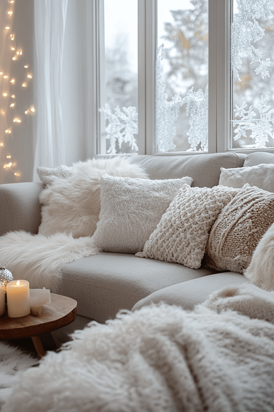 Winter-inspired grey sofa living room ideas offer serene, light-filled elegance. Whites, pale greys, and silvers evoke snowy tranquility. Soft throws and plush cushions introduce cozy textures. The grey sofa anchors the design for balance and cohesion. The space feels peaceful, refined, and seasonally inviting. Create a winter wonderland with grey sofa living room ideas today!