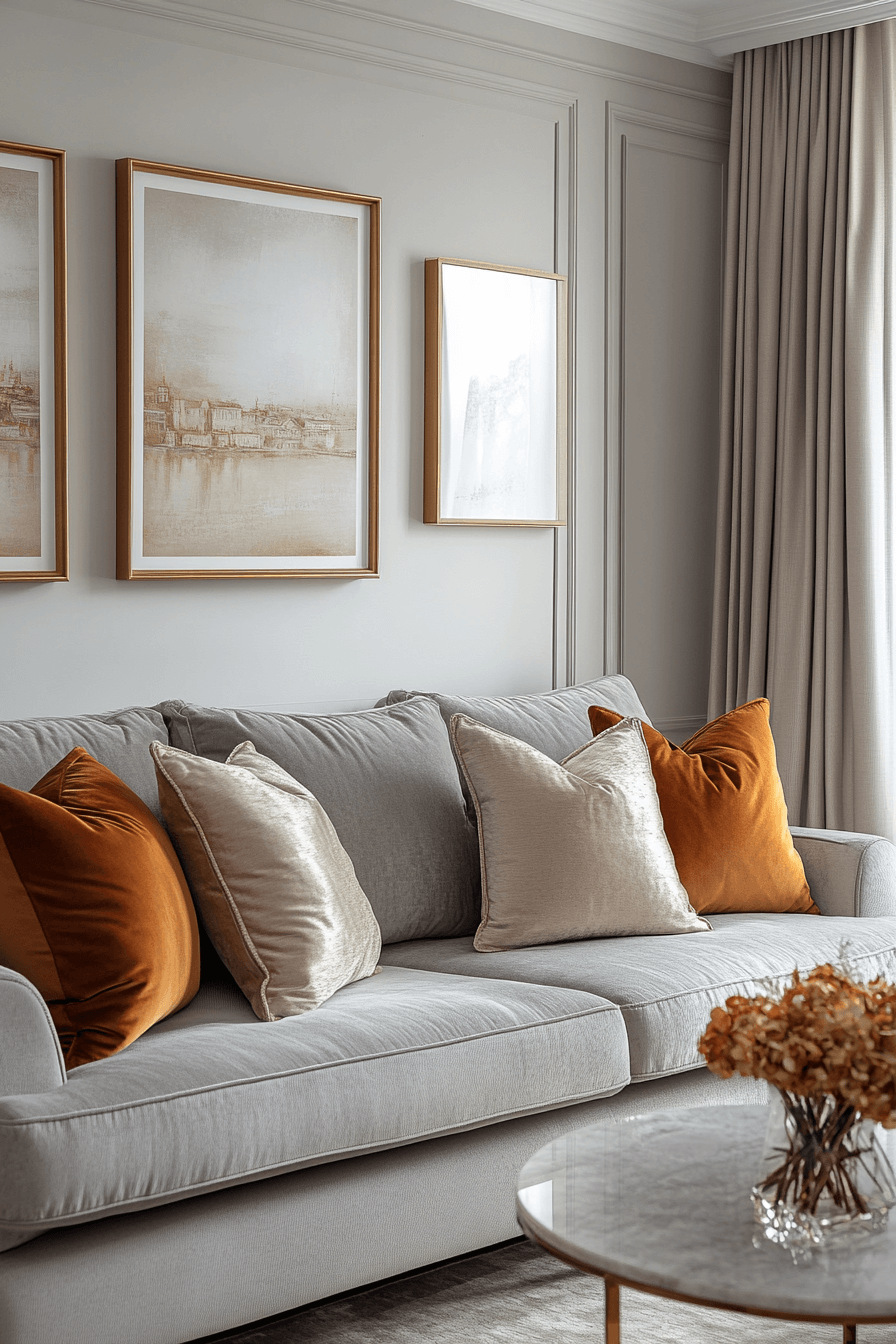 Understated glamour grey sofa living room ideas embrace subtle, elegant sophistication. Muted metallics, soft jewel tones, and sparkling details bring refined charm. The grey sofa provides neutral balance for luxurious accents. The overall look feels polished, graceful, and effortlessly chic. Add timeless elegance with understated grey sofa living room ideas today!