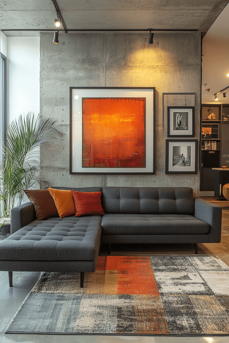 Artistic grey sofa living room ideas highlight creativity and personal expression. Statement art, sculptural décor, and unexpected textures energize the room. The grey sofa serves as a neutral, grounding anchor. The space feels curated, dynamic, and lively. Let your personality shine with artistic grey sofa living room ideas today!