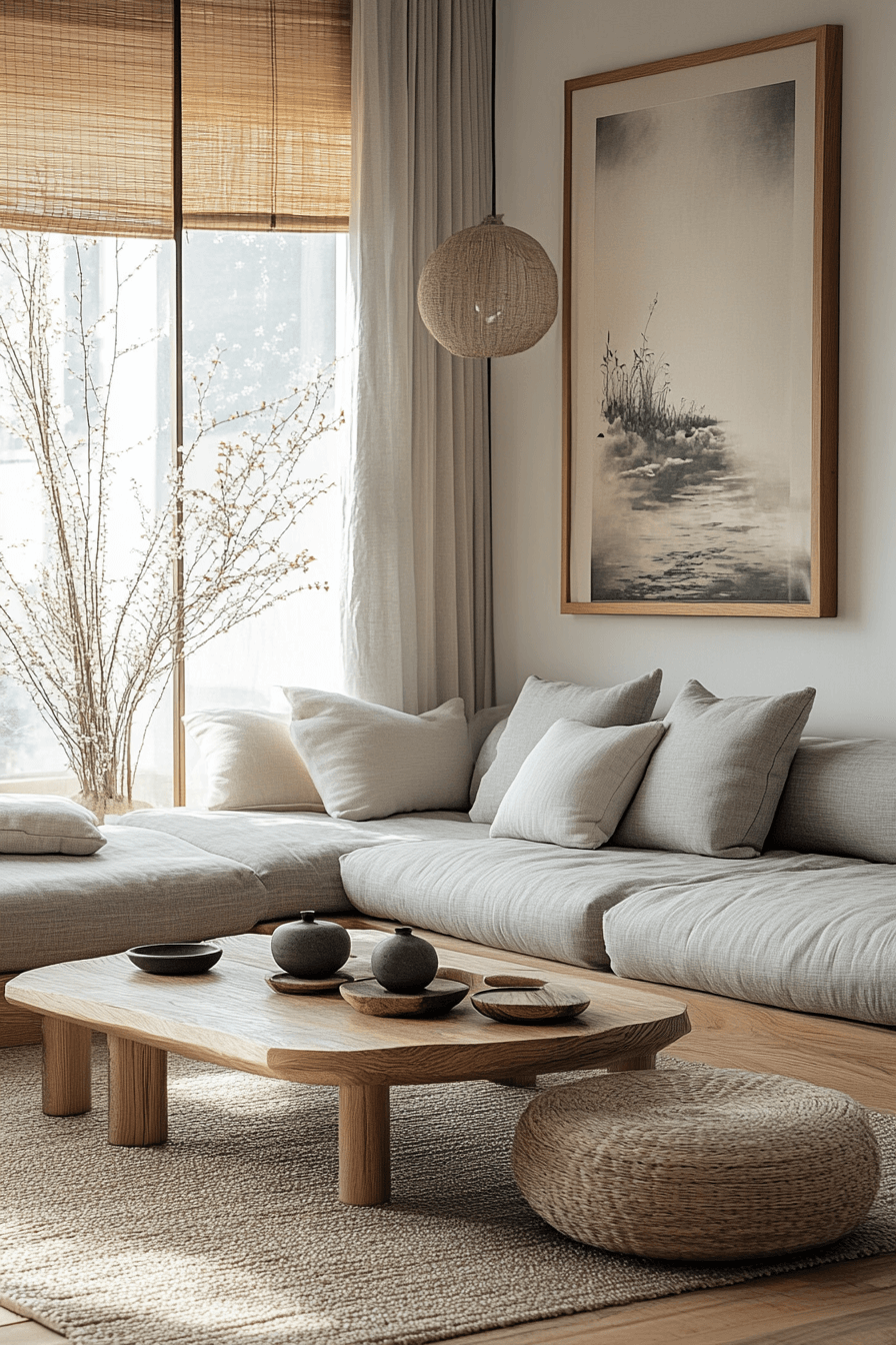Zen-inspired grey sofa living room ideas cultivate balance and mindful simplicity. Neutral tones, natural woods, and uncluttered layouts encourage calm. The grey sofa complements the serene palette. Minimal décor enhances focus and relaxation. The space feels harmonious, open, and intentionally peaceful. Bring Zen serenity home with grey sofa living room ideas today!
