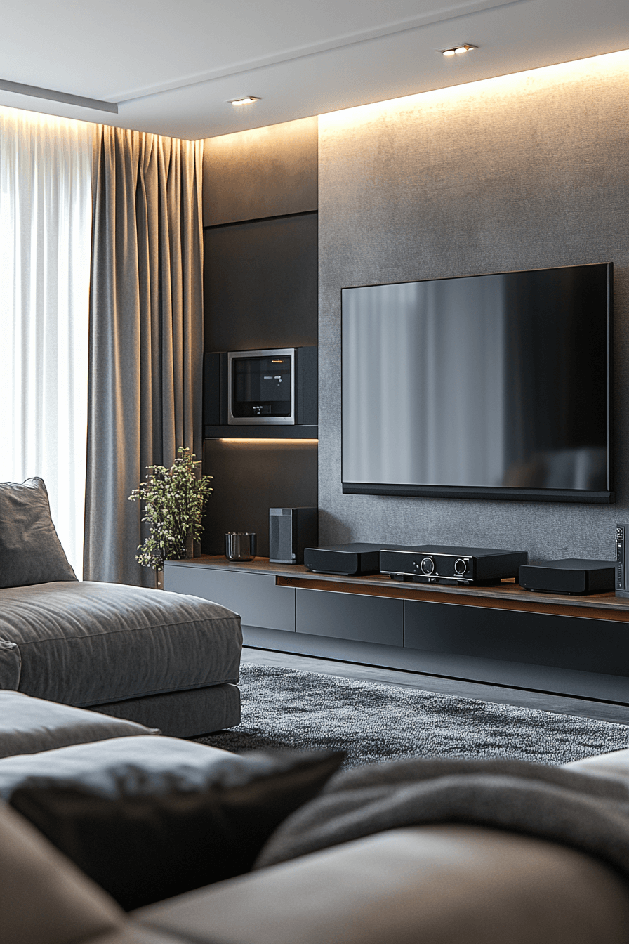 High-tech grey sofa living room ideas integrate sleek functionality and modern convenience. Minimalist grey sofas pair with hidden storage, smart lighting, and metallic finishes. Subtle technology enhances comfort while maintaining clean style. The space feels polished, futuristic, and efficient. Perfect for contemporary, tech-minded homes. Upgrade your living room with innovative grey sofa living room ideas today!