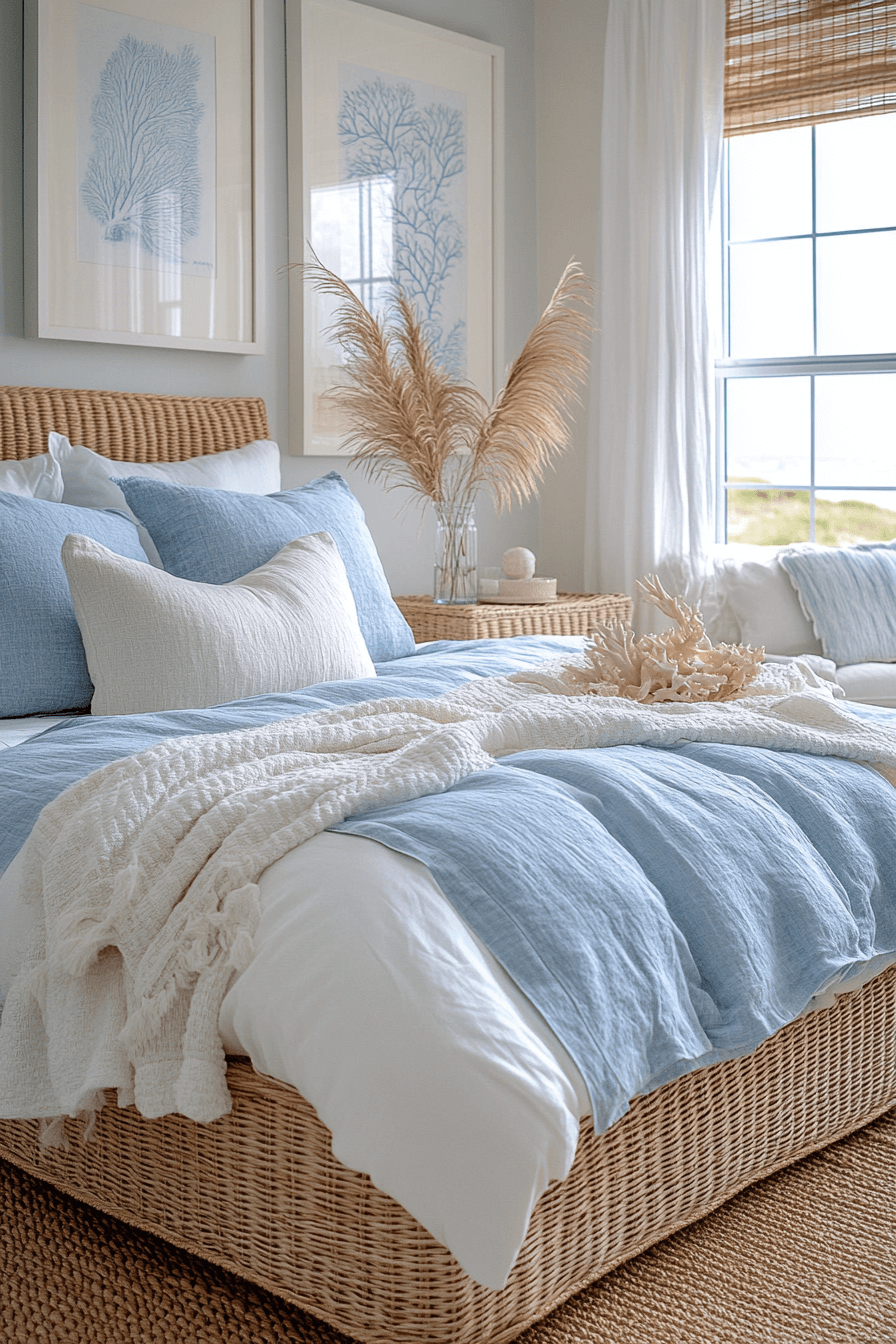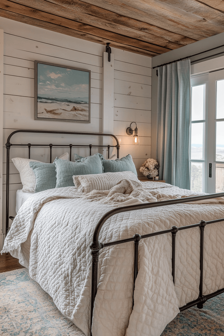 Coastal guest room ideas make everyday living feel like a beach retreat. Driftwood decor, pale blues, and white linens bring seaside softness. The space feels airy, fresh, and full of ease. It’s relaxation reimagined.