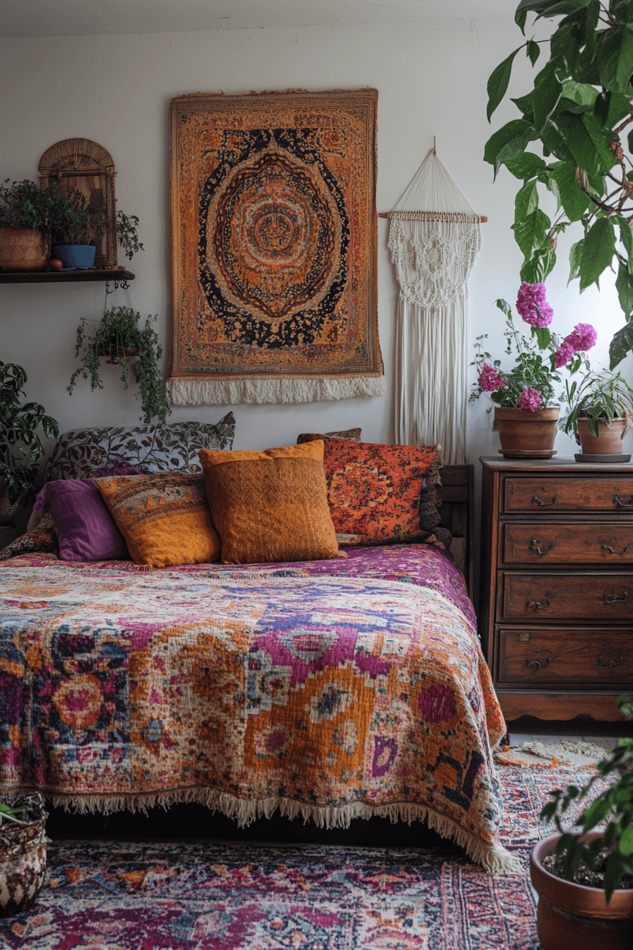 Bohemian guest room ideas fill your home with spirit and color that sparks joy. Layered rugs, macramé art, and cozy textiles express individuality and warmth. The mismatched beauty feels effortless yet curated. Every corner tells a story.