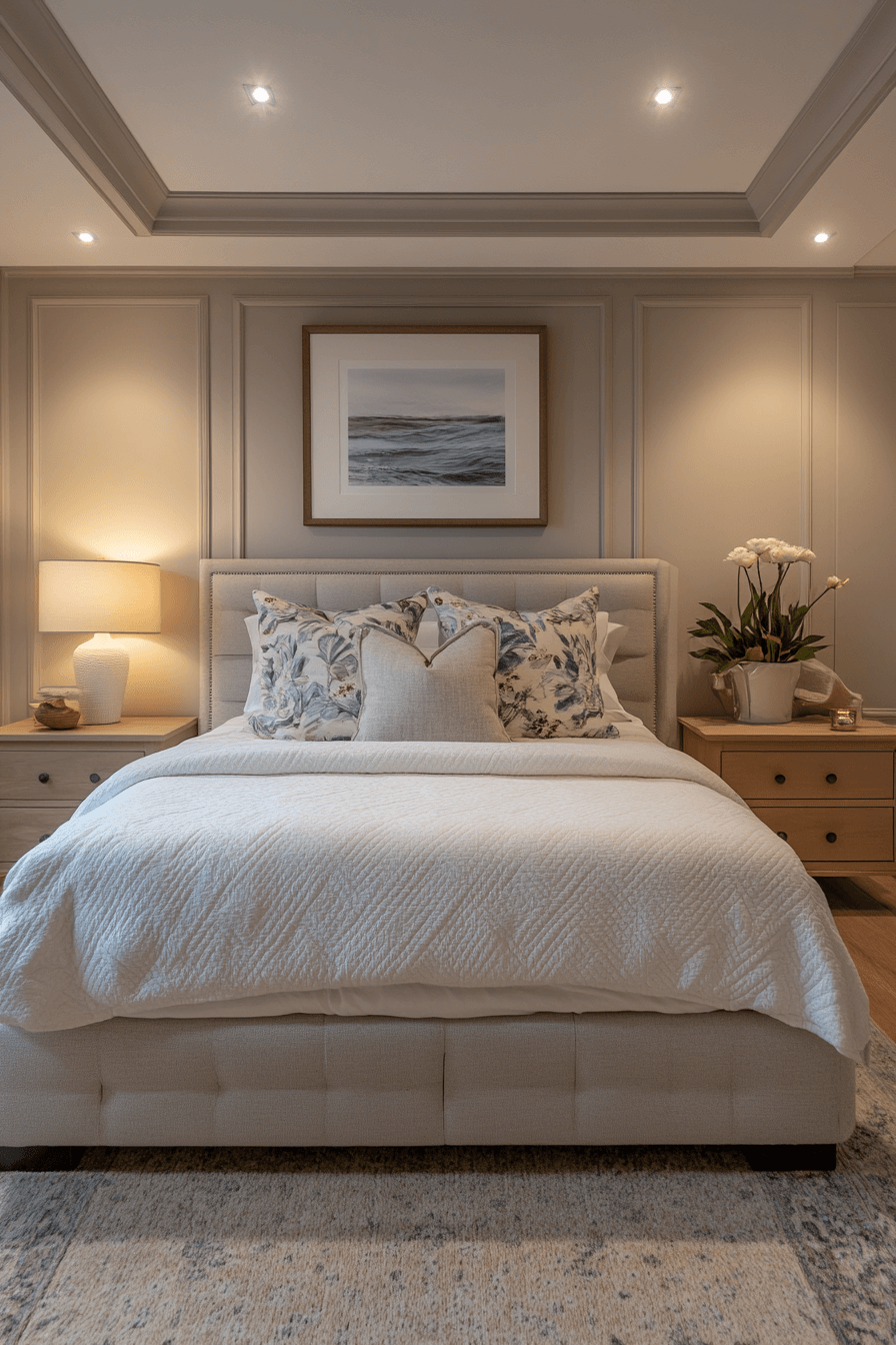 Tranquil guest room ideas create an atmosphere of deep relaxation. Soft tones, minimal decor, and gentle lighting encourage stillness. The room feels airy yet grounded. It’s peaceful by design.