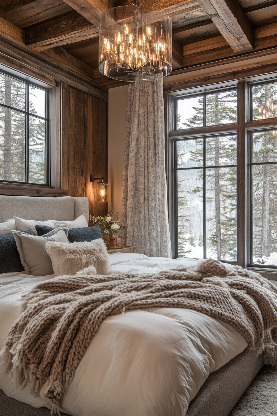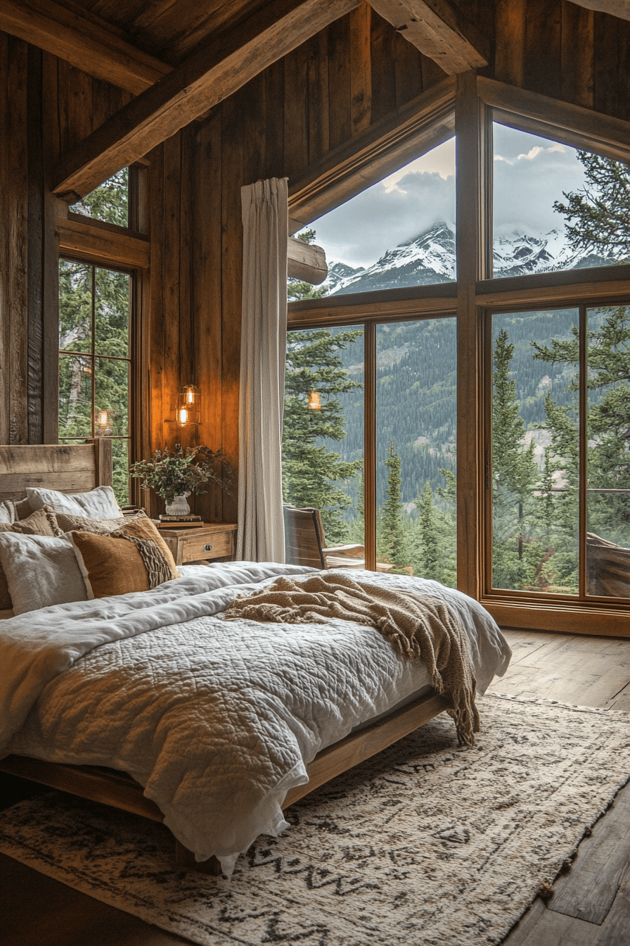 Mountain-inspired guest room ideas pair rugged beauty with cozy comfort. Natural wood, warm blankets, and stone accents evoke alpine charm. Large windows invite sunlight and scenic serenity. It’s rustic luxury redefined.