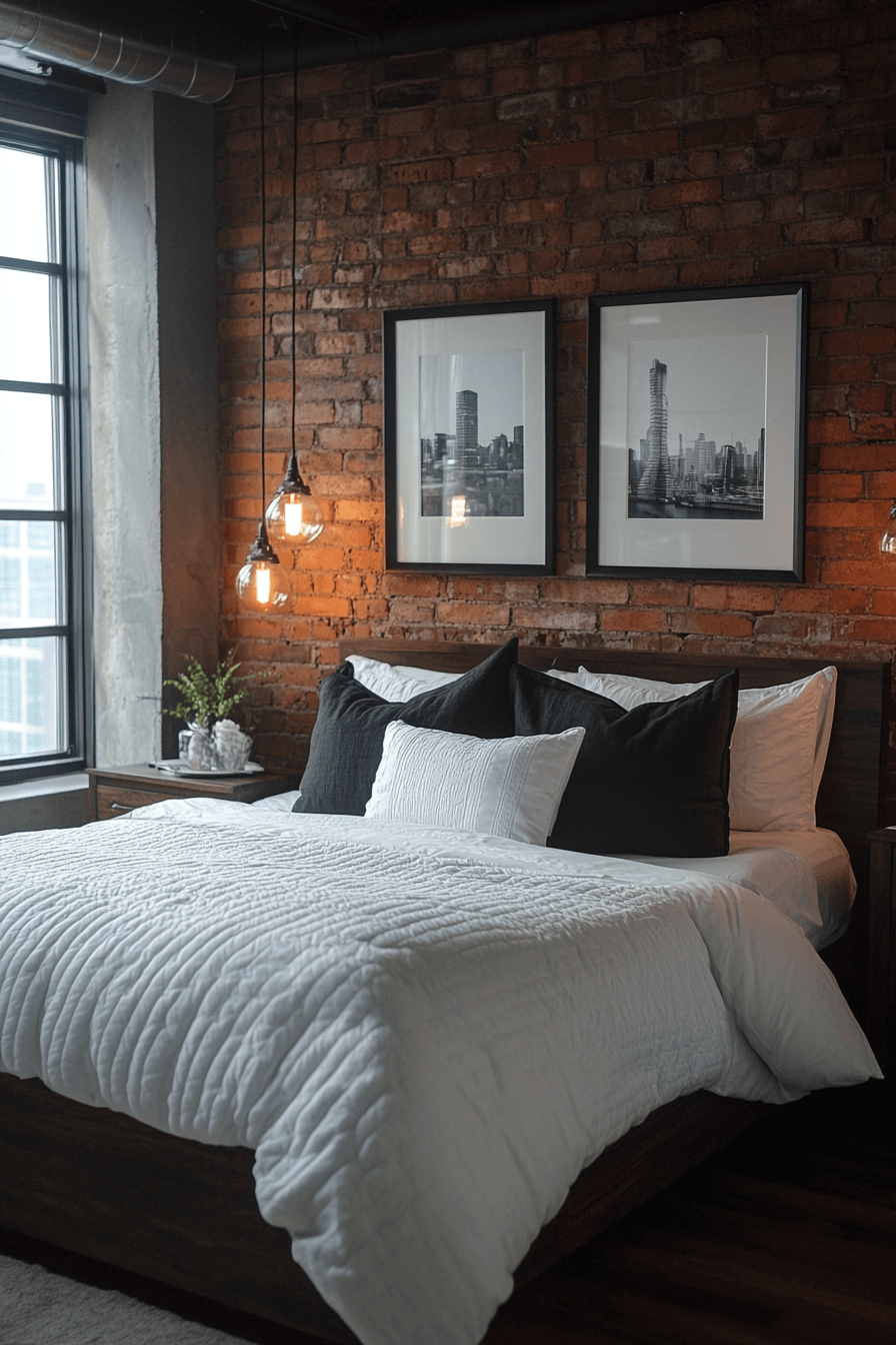 Loft-style guest room ideas capture industrial edge with a touch of softness. Exposed brick, open space, and rich textures create a striking contrast. Statement lighting adds modern drama. It’s urban living with soul.
