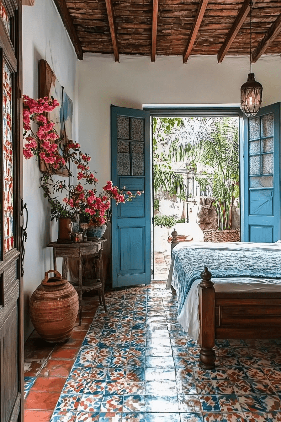 Mediterranean guest room ideas glow with earthy warmth and coastal ease. Whitewashed walls, terracotta tones, and sea-blue accents radiate comfort. Sunlight enhances every natural texture. It’s breezy and effortlessly inviting.