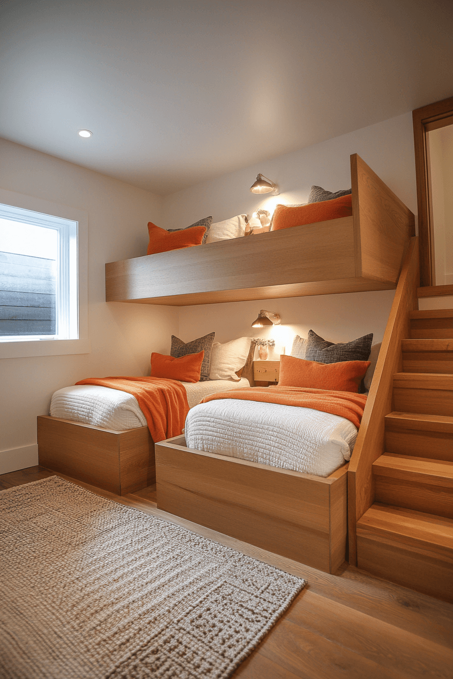 Shared bedrooms feel calmer and more balanced with this vertical solution. Loft beds for small rooms offer fairness by creating individual zones without expanding the footprint. Personal storage and lighting support independence. The layout stays organized and harmonious. Sharing becomes easier and more enjoyable.