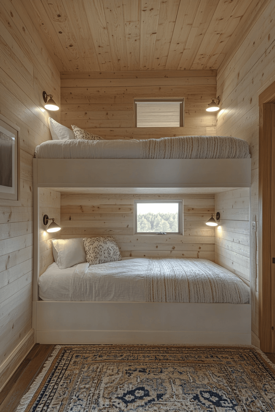 Two sleepers share comfortably in this balanced vertical design. Loft beds for small rooms simplify shared living by stacking sleeping areas efficiently. Individual storage and lighting maintain personal space. The layout feels structured and fair. Safety remains a priority.