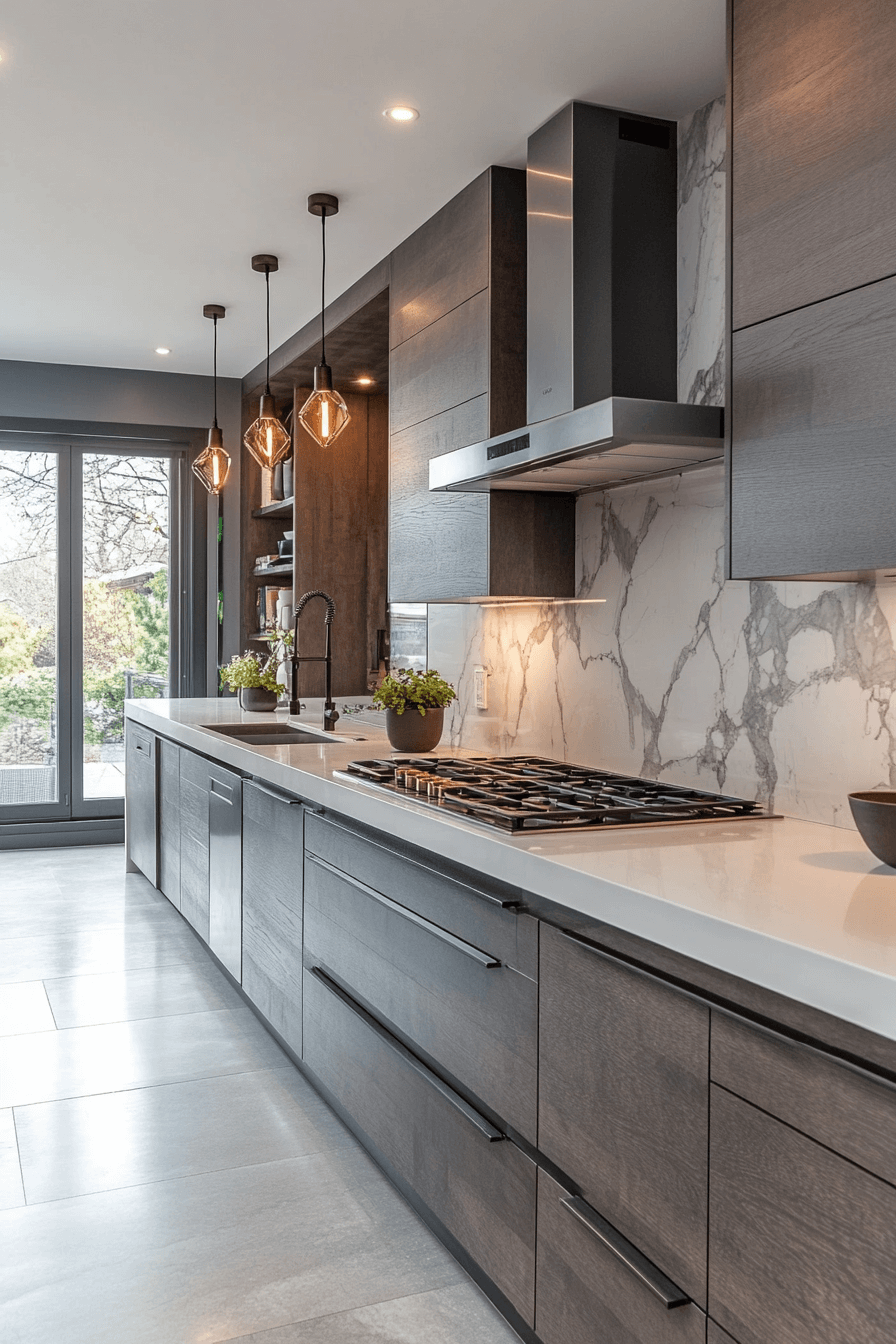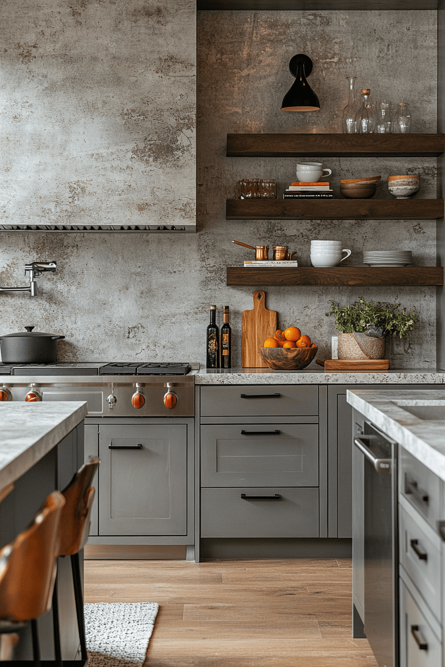 Ash-toned neutral kitchen cabinets deliver sleek sophistication with a modern edge. The cool gray shade feels polished without becoming sterile. Stainless steel and bold accents pair beautifully here. The result feels contemporary and confident.