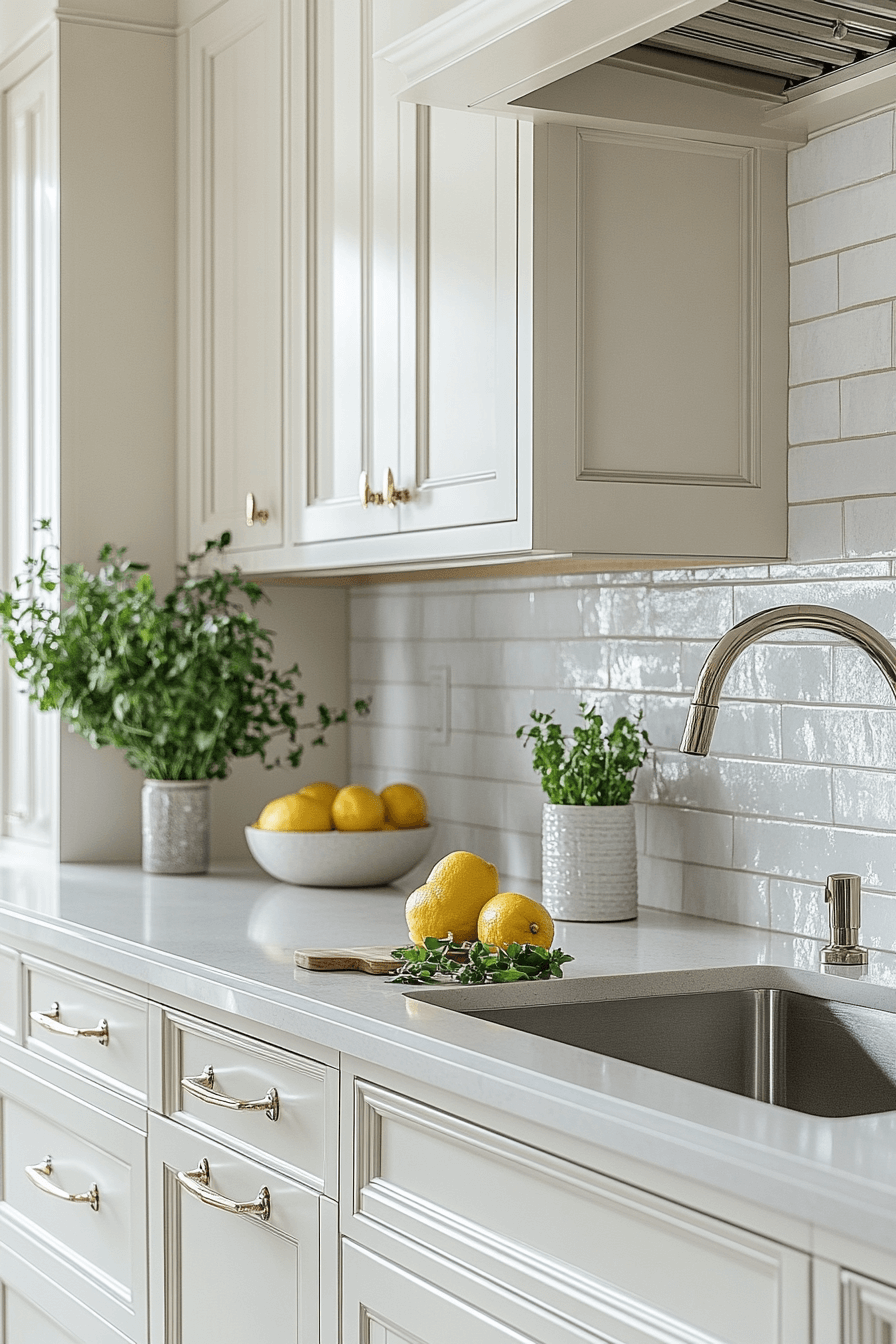 Canvas-clean neutral kitchen cabinets create a bright foundation for creative styling. The fresh tone makes kitchens appear larger and more open. Seasonal decor and bold accents shine effortlessly against this backdrop. The style works beautifully in minimalist and Scandinavian-inspired spaces. Flexibility becomes the highlight.