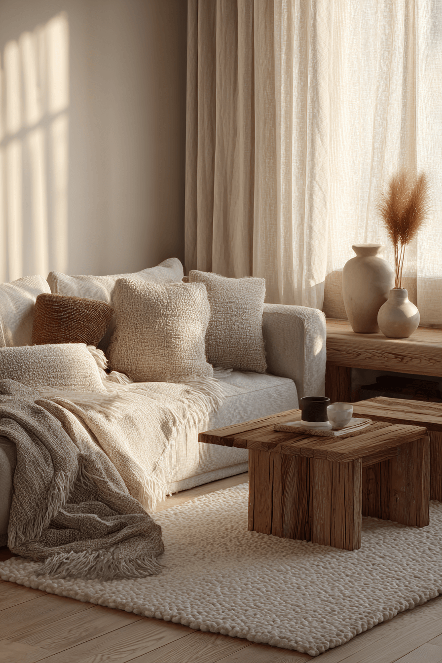 Wool and linen are key materials in organic modern decor because they add softness, warmth, and subtle movement to a space. These natural fibers work beautifully in upholstery, curtains, bedding, and decorative pillows. Their texture helps clean-lined rooms feel more lived in and comfortable. They also support the relaxed elegance that makes this style so appealing. The final atmosphere feels cozy, light, and quietly luxurious. Explore more organic modern decor ideas that feature wool and linen beautifully!