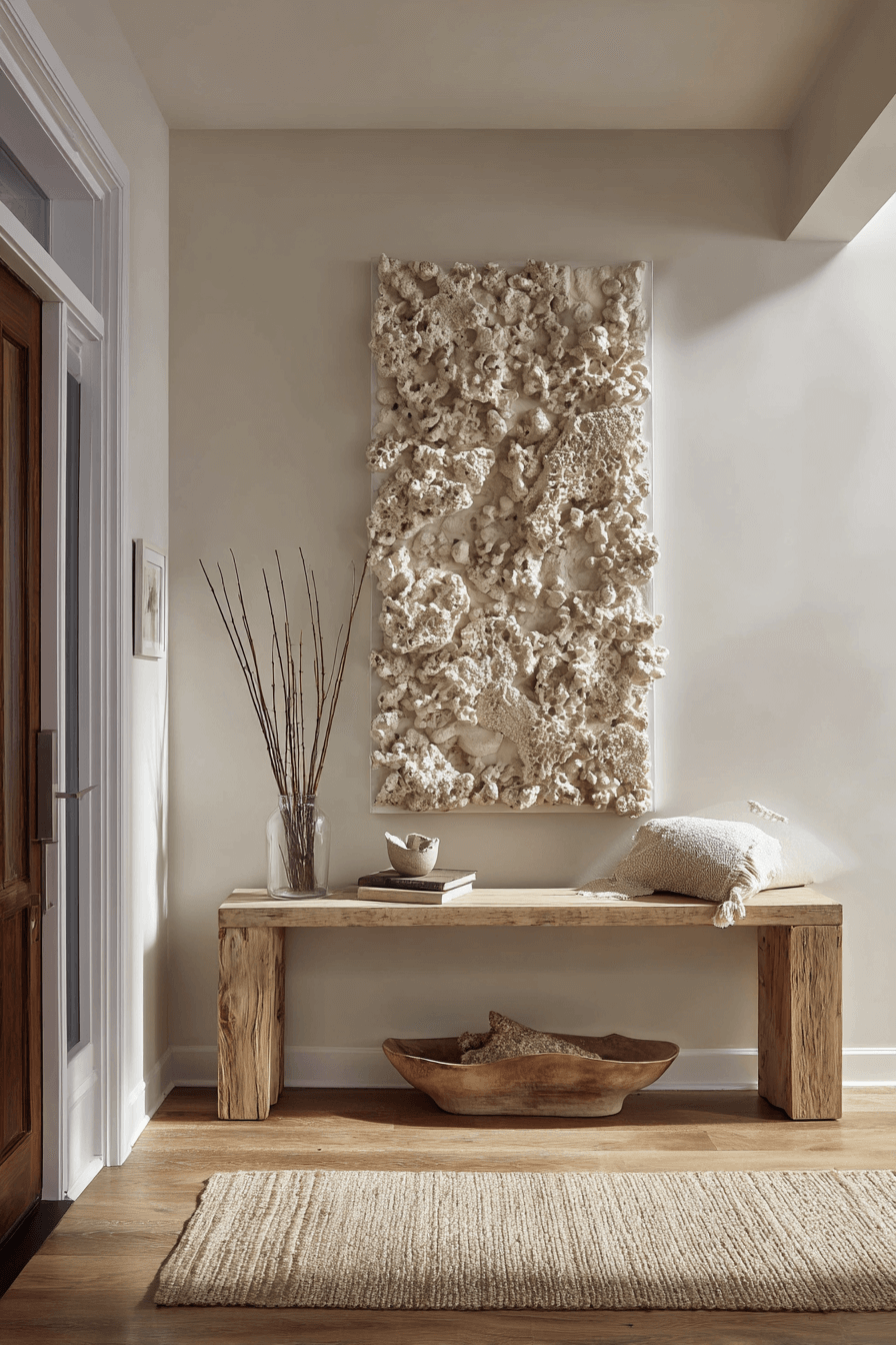 Textured wall art can make organic modern decor feel more layered and expressive without taking away from its clean simplicity. Pieces made from plaster, wood, fiber, or fabric add dimension in a soft and sculptural way. They create visual interest while still feeling calm and understated. This kind of artwork helps a room feel more personal and thoughtfully finished. The final space feels artistic, balanced, and full of natural warmth. Find more organic modern decor ideas that use textured wall art beautifully!