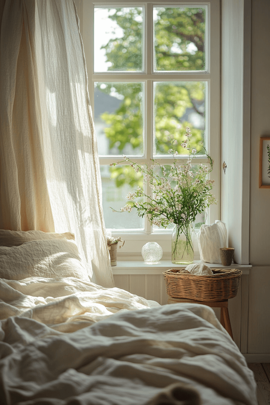 Light and airy window treatments can instantly improve tiny bedroom decor by letting in more natural light. Sheer curtains, simple blinds, or breezy drapes keep the room feeling open and soft. This works especially well in tiny bedroom decor because brighter rooms almost always feel larger and more welcoming. Soft fabrics add movement and a bit of texture without weighing the design down. The final look feels balanced, fresh, and inviting. Tap to see more tiny bedroom decor window styling ideas!